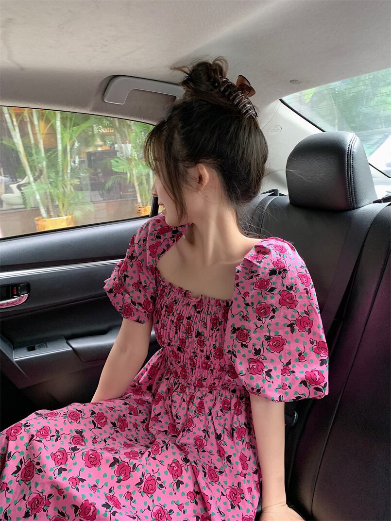 Floral dress women's design sense niche summer French retro gentle first love romantic puff sleeve long skirt ロング レトロ サマー 夏物 花柄 スカート s576168289596222