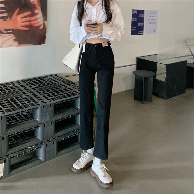 Black slit jeans women's spring and autumn 2022 new high-waisted slimming all-match small straight pipe trousers ブラック スプリング 春物 オータム 秋物 s576190013771761