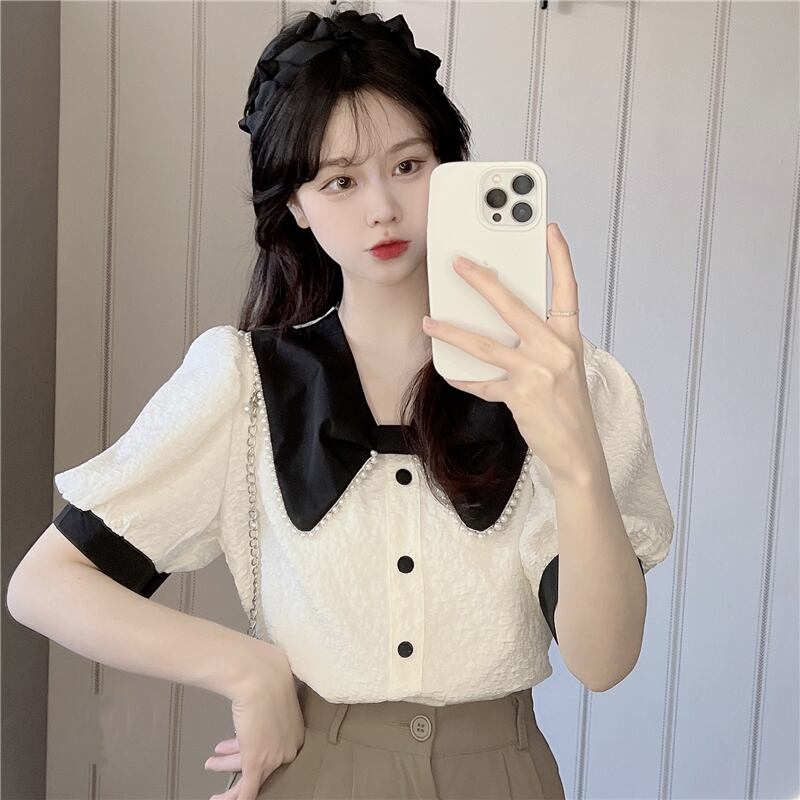 French small fragrance sweet bow top women's summer 2022 new chic unique shirt short-sleeved shirt リボン 大人ガーリー スウィート キュート カジュアル サマー 夏物 s576191928346999