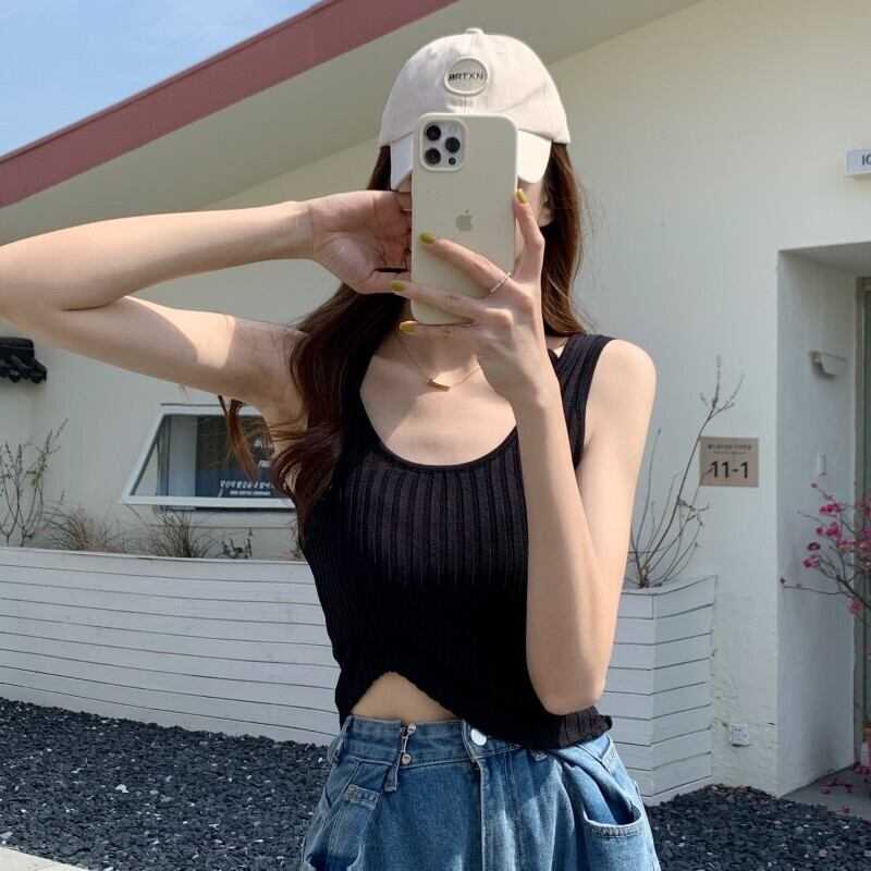 Sweet babes halter neck camisole women wear pure desire tube top design niche chic knitted top summer 大人ガーリー スウィート キュート カジュアル サマー 夏物 ピュア s57615595029237