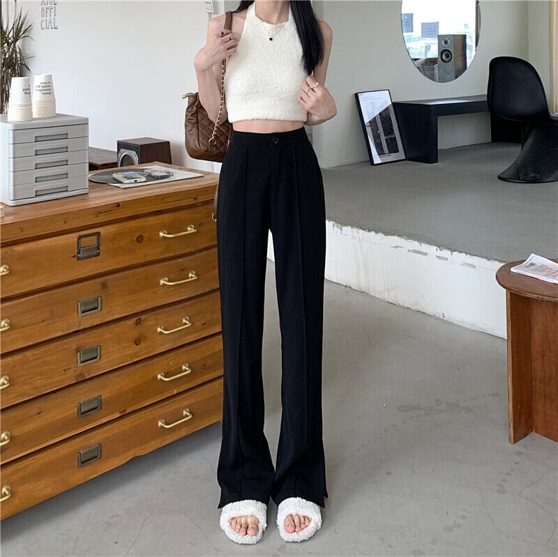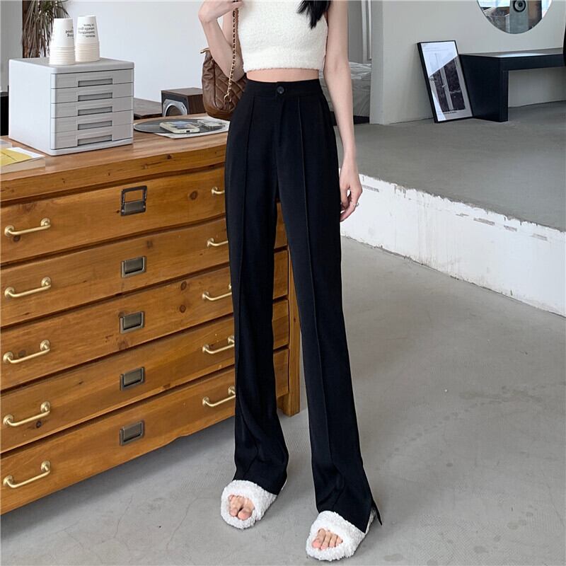 Black split suit pants women's summer high waist drape 2022 new loose straight mopping floor casual flared pants ハイウェスト レッド ブラック カジュアル サマー 夏物 s57616058089349