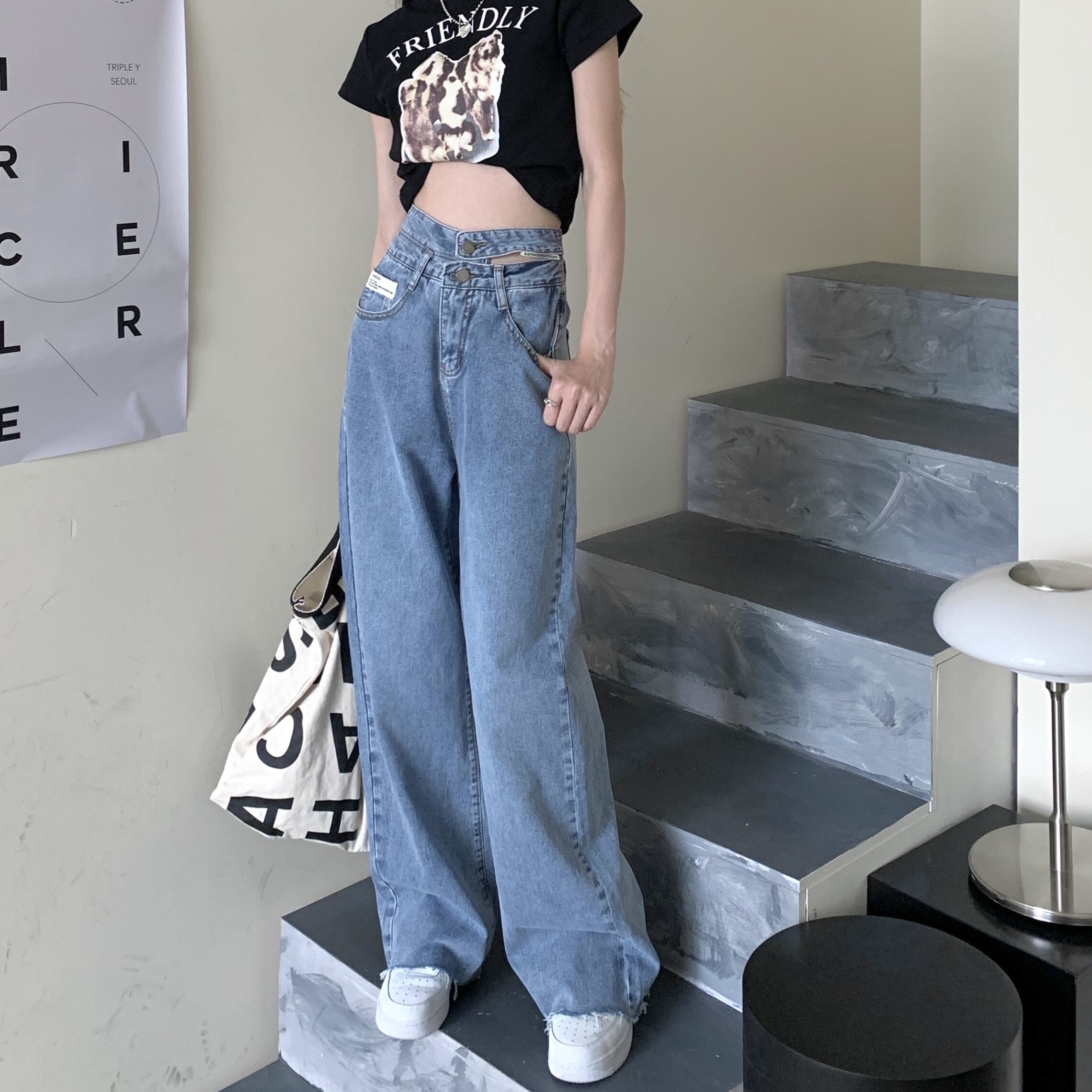 Jeans women's summer chic Hong Kong flavor 2022 new high-waisted thin straight-tube loose-length wide-leg pants サマー 夏物 s57614885711784