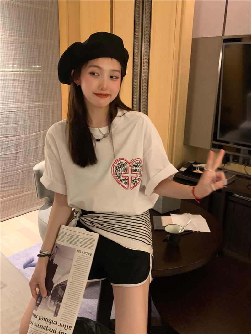 Black short-sleeved T-shirt women's summer 2022 new design sense niche loose medium-length casual top clothes ins tide ブラック カジュアル サマー 夏物 Tシャツ s576143308840079