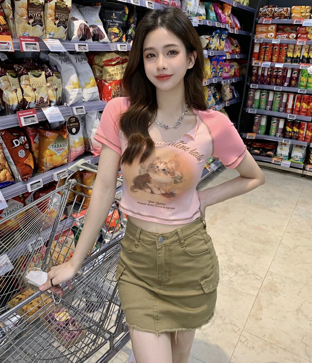 Hot short-sleeved T-shirt women's summer 2022 new design sense niche slim slimming machine short top clothes ショート サマー 夏物 スリム Tシャツ s576183807894402