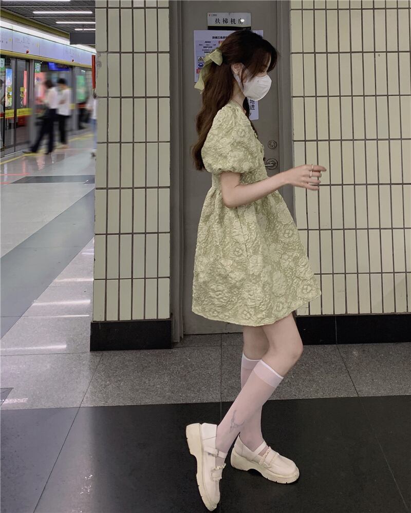 Puff sleeve dress female design sense niche summer gentle first love milk cute sweet little short skirt ショート 大人ガーリー スウィート キュート カジュアル サマー 夏物 スカート s576185541496610