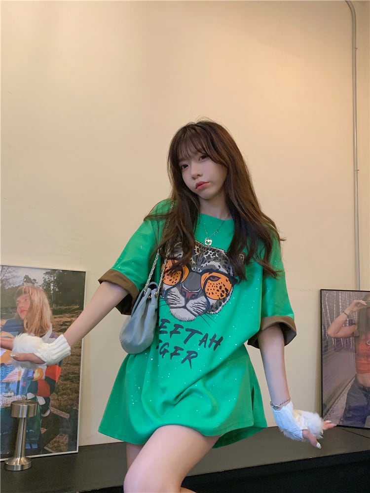 Tiger short-sleeved T-shirt women's design sense niche summer bottoms missing mid-length oversize loose top ins サマー 夏物 Tシャツ s576180103381129