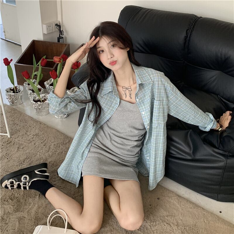 Plaid shirt jacket women's spring design sense niche sunscreen shirt 2022 new Hong Kong style mid-length top スプリング 春物 s576121805922668