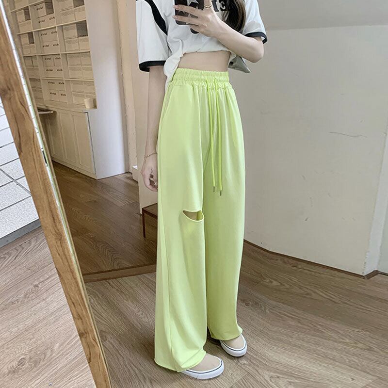 Hollow wide-leg pants women's summer thin design sense of niche high-waisted straight-leg mopping casual sports pants trendy ins カジュアル サマー 夏物 s576164433314148