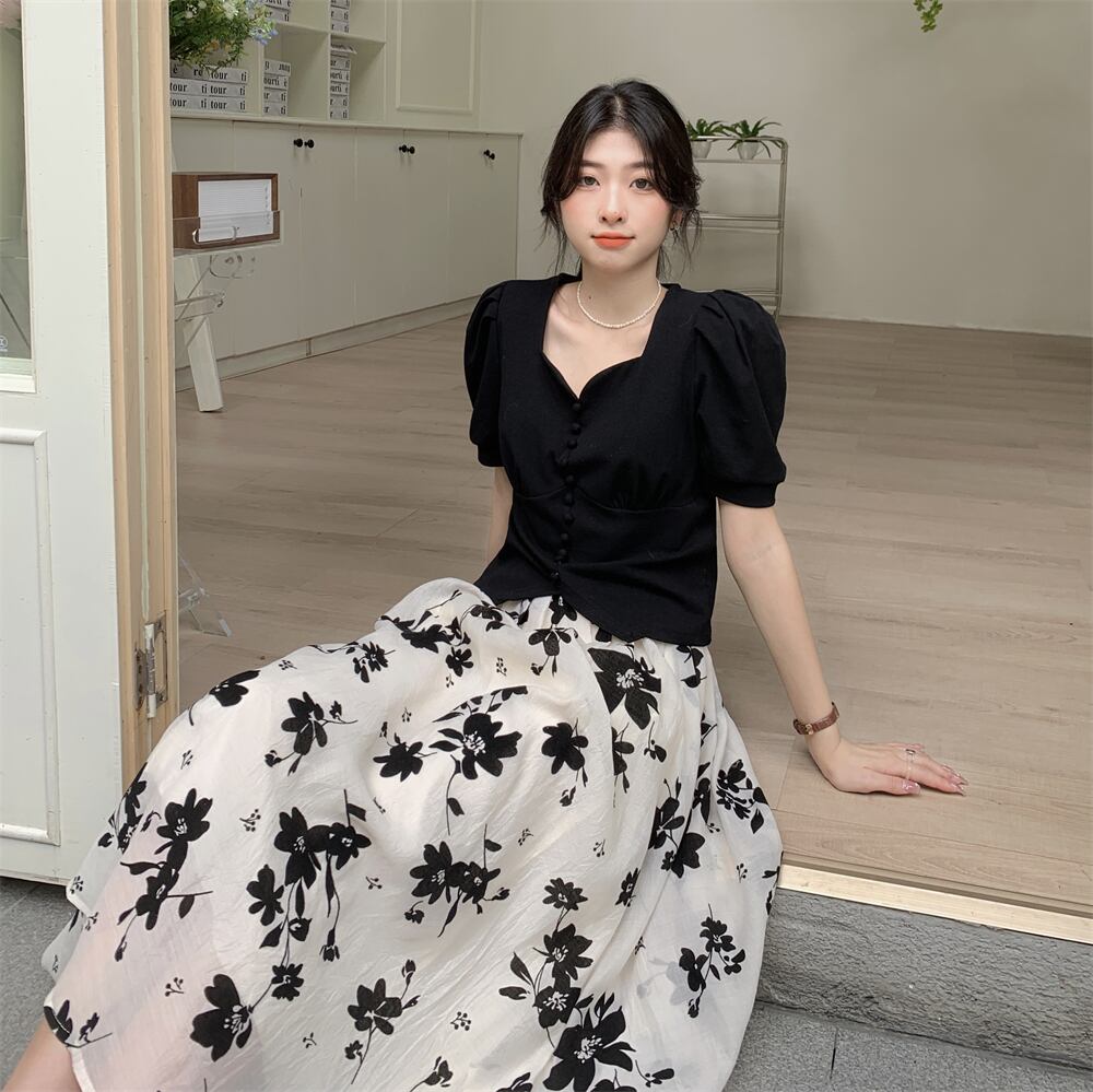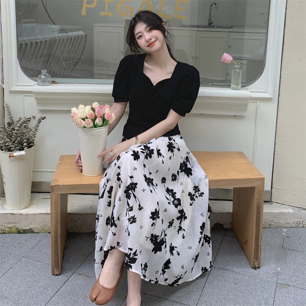 色:ブラックshirt,花柄スカート