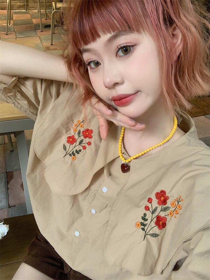 temperament chic doll collar top women's summer 2022 new design small sweet puff sleeve shirt 大人ガーリー スウィート キュート カジュアル サマー 夏物 s576190208992408