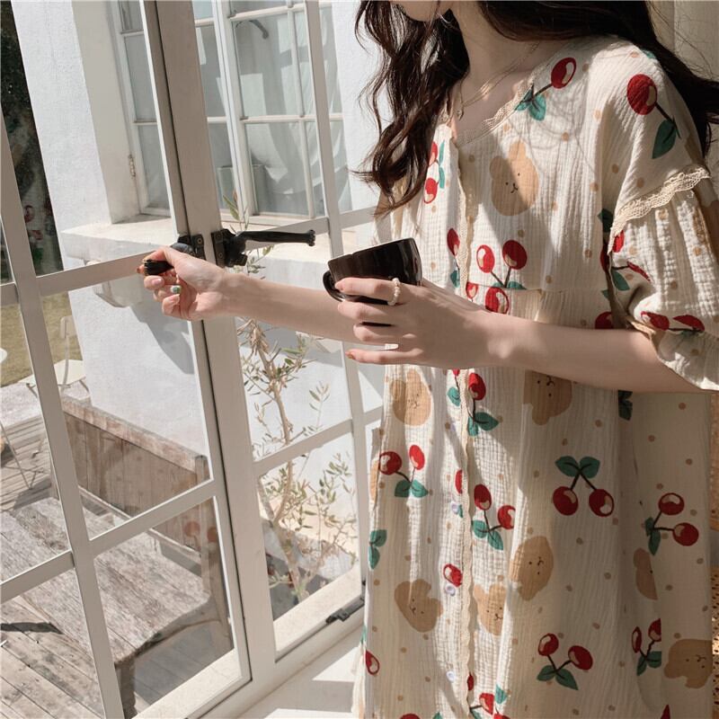 Cherry pajamas women's summer ins wind 2022 new cute sweet little net red popular home clothes suit レッド 大人ガーリー スウィート キュート カジュアル サマー 夏物 s576147330338627