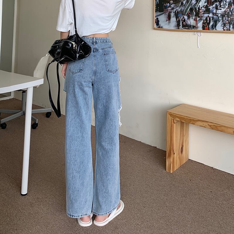 Hollow love jeans women's summer design sense niche 2022 new high waist loose wide leg pants trendy ins ハイウェスト サマー 夏物 ワイドレッグ ワイドパンツ s576156435843362