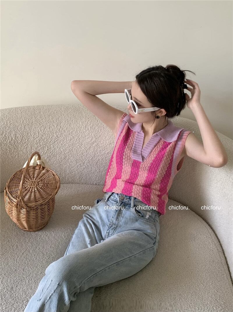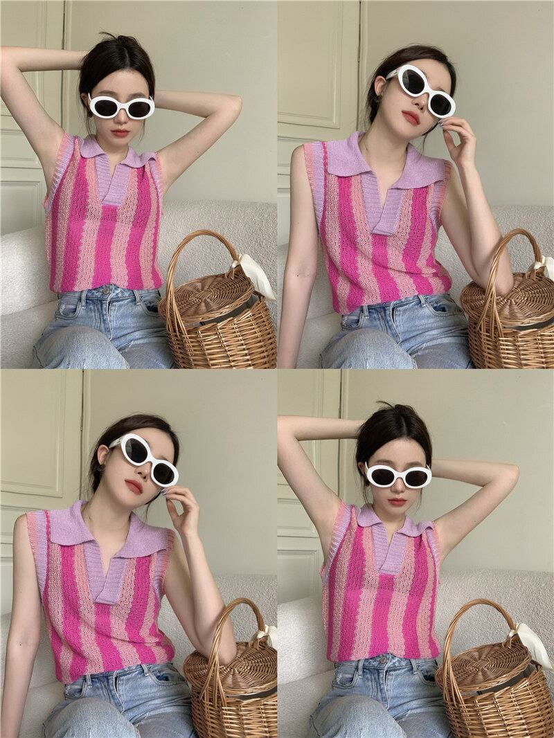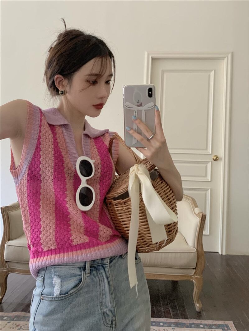 polo collar sleeveless t-shirt women's summer design niche 2022 new fashion western style knitted vest top clothes サマー 夏物 ノースリーブ Tシャツ s576133673410298