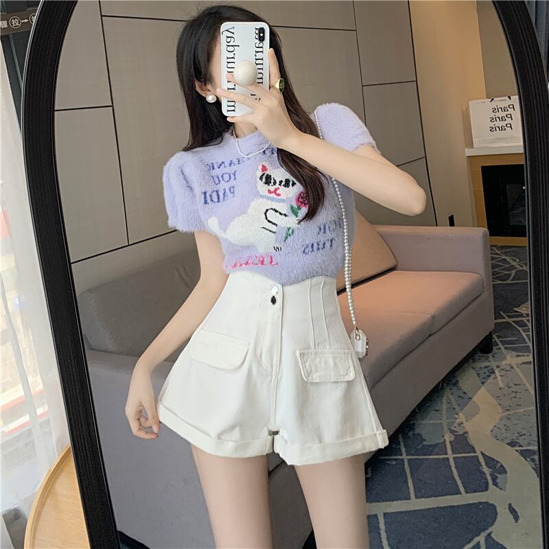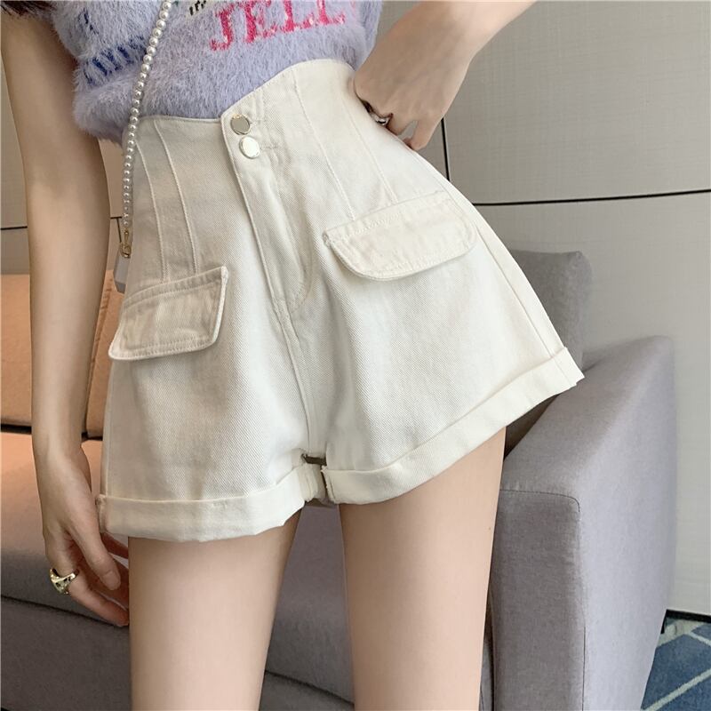 Hot white denim shorts female design sense niche summer small tall waist a word wide leg pants tide ins ホワイト サマー 夏物 ショーツ ブルマー ワイドレッグ ワイドパンツ s576174607098775