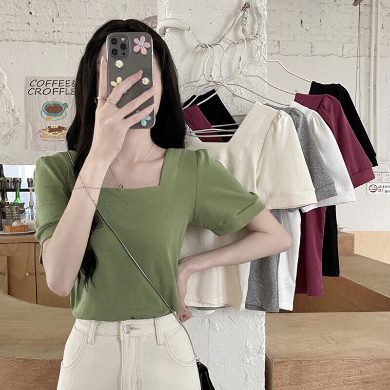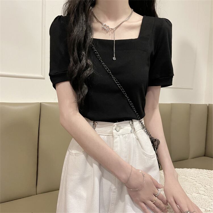 Short-sleeved T-shirt women's summer 2022 new net red explosion style design niche simple wild square collar top ins tide レッド サマー 夏物 Tシャツ スクウェア s576173001830275