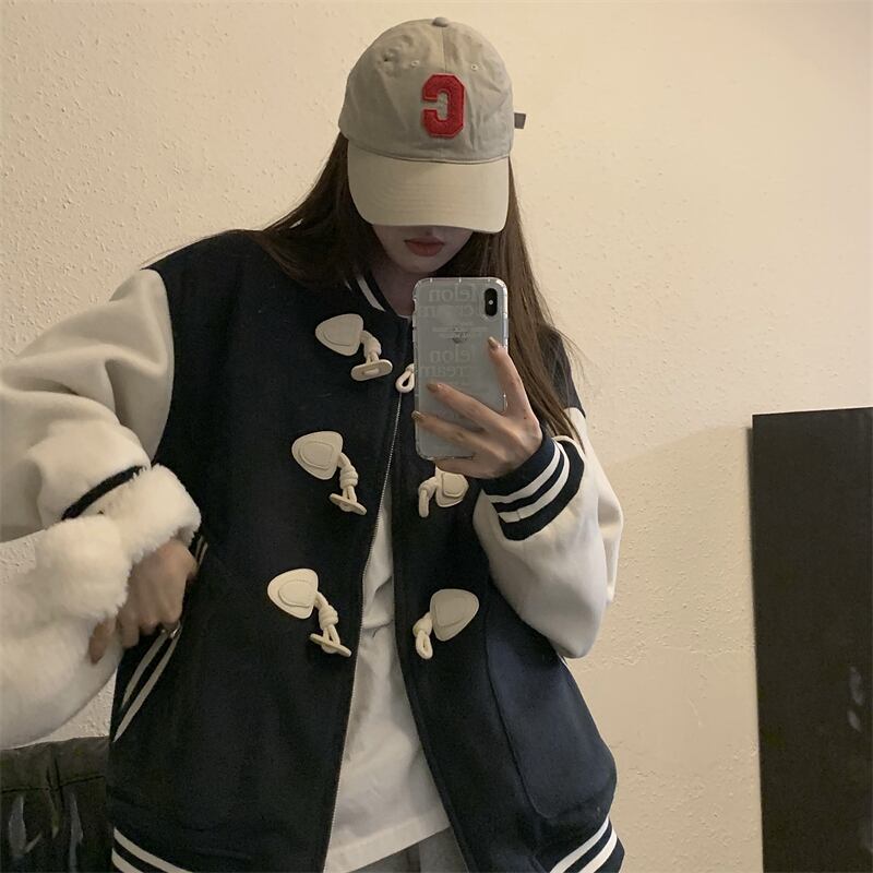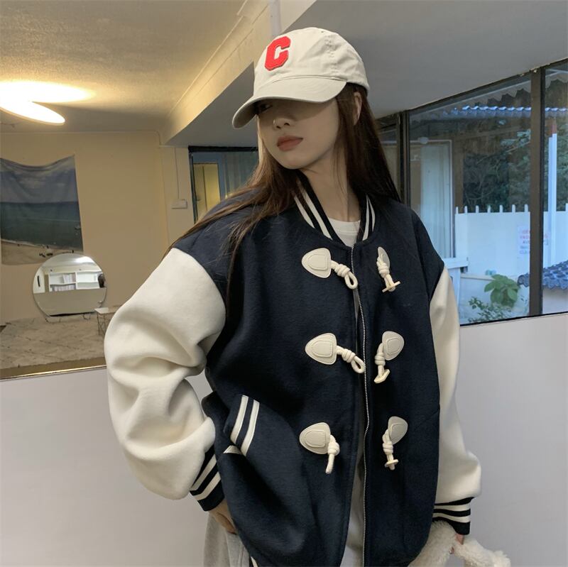 Black baseball unim jacket women's autumn and winter plus velvet thickening 2022 new American retro small ins tide ブラック レトロ オータム 秋物 ウィンター 冬物 s576171761534631