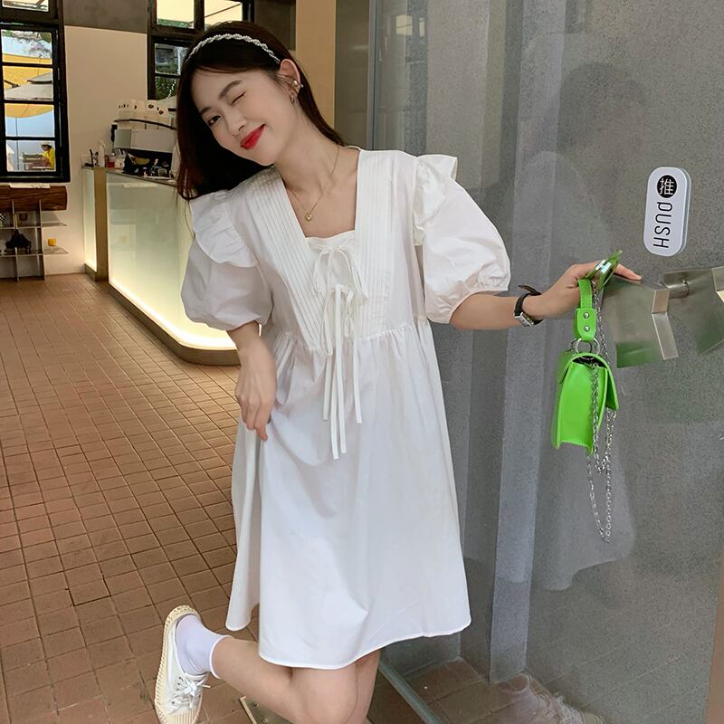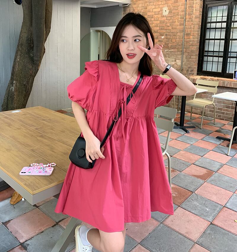Rose red dress female design sense niche summer 2022 new sweet and gentle little puff sleeve skirt レッド 大人ガーリー スウィート キュート カジュアル サマー 夏物 スカート s576176485131572
