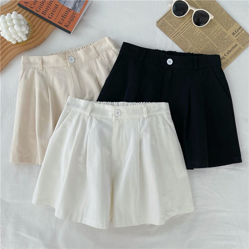 Spice Girls White Shorts Women's Summer Outer Wear 2022 Small Waist Loose A-Line Wide Leg Pants ホワイト サマー 夏物 ショーツ ブルマー Aライン ワイドレッグ ワイドパンツ s576163221395068