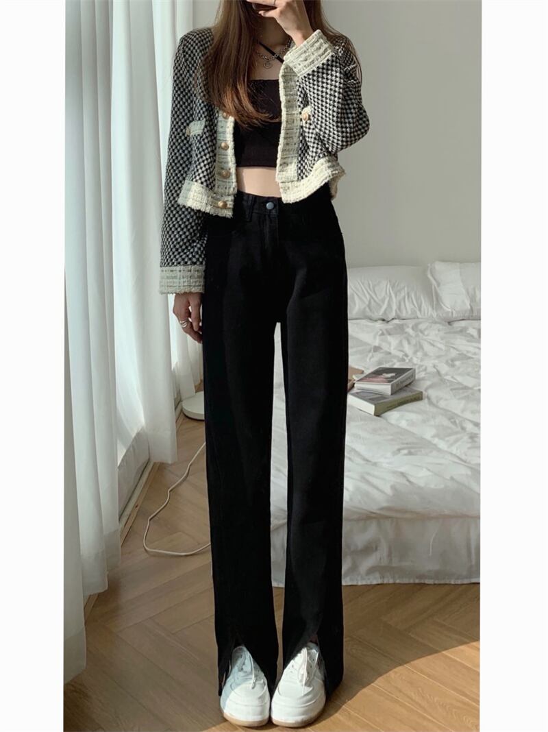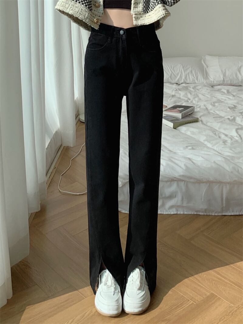 Slit jeans women's design sense niche spring 2022 new high-waisted slim black wide-leg pants trendy ins ブラック スプリング 春物 スリム s576129198910011
