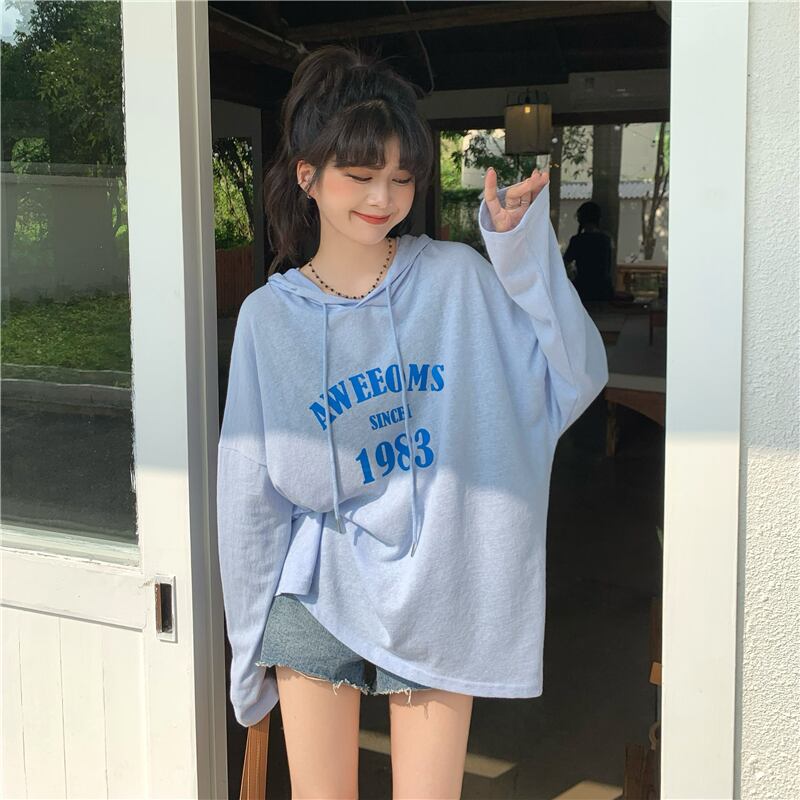 Hooded long-sleeved T-shirt women's summer thin sunscreen blouse 2022 new design niche oversize top ロング ブラウス サマー 夏物 Tシャツ s576123325175838