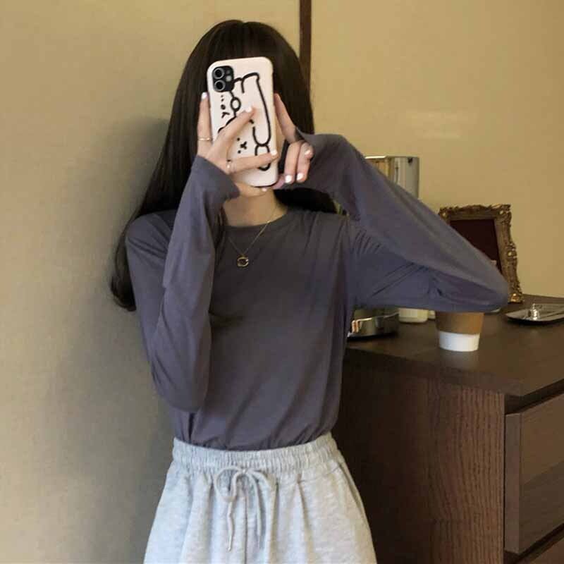 Spring and autumn 2022 new version is thin, round neck, all-match, western style, inner body, long-sleeved bottoming shirt, women's clothing ロング スプリング 春物 オータム 秋物 Oネック s57616558956944