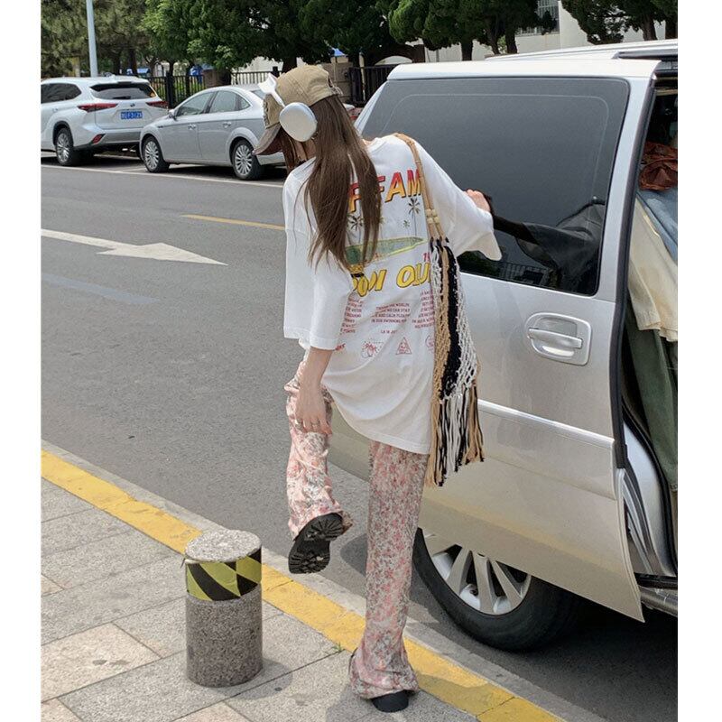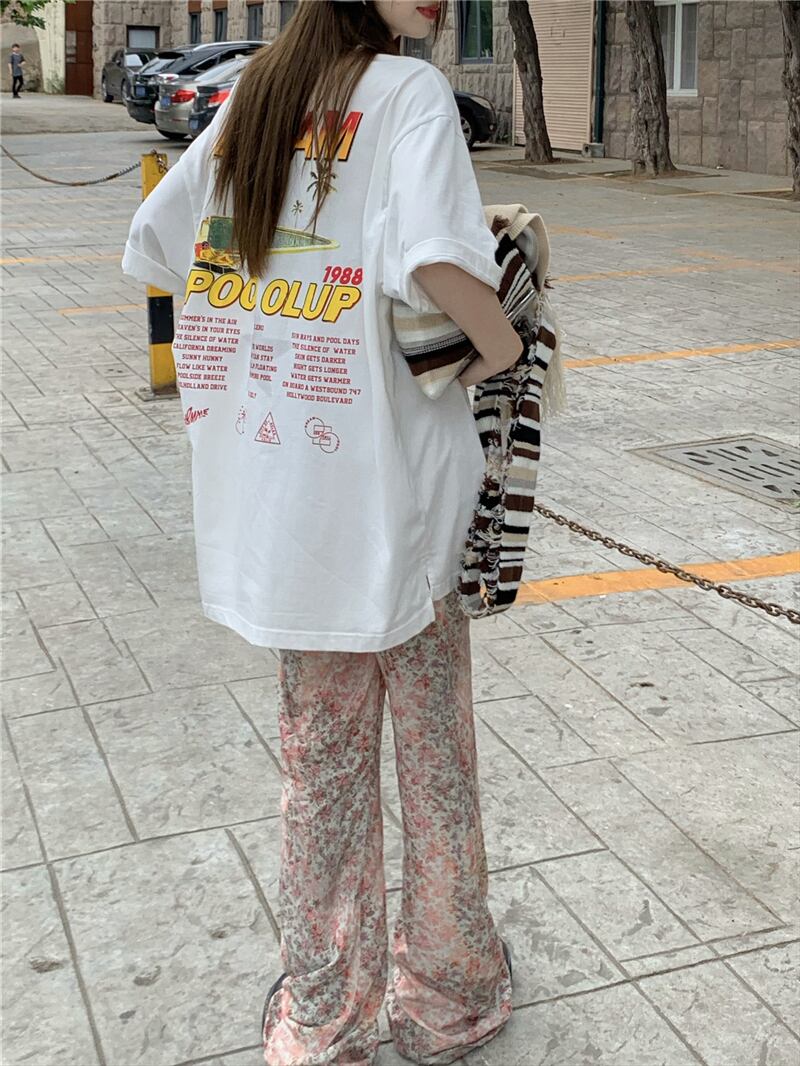 ホワイトTシャツ サマールーズカジュアルロングトップス 夏物 s57614630185125