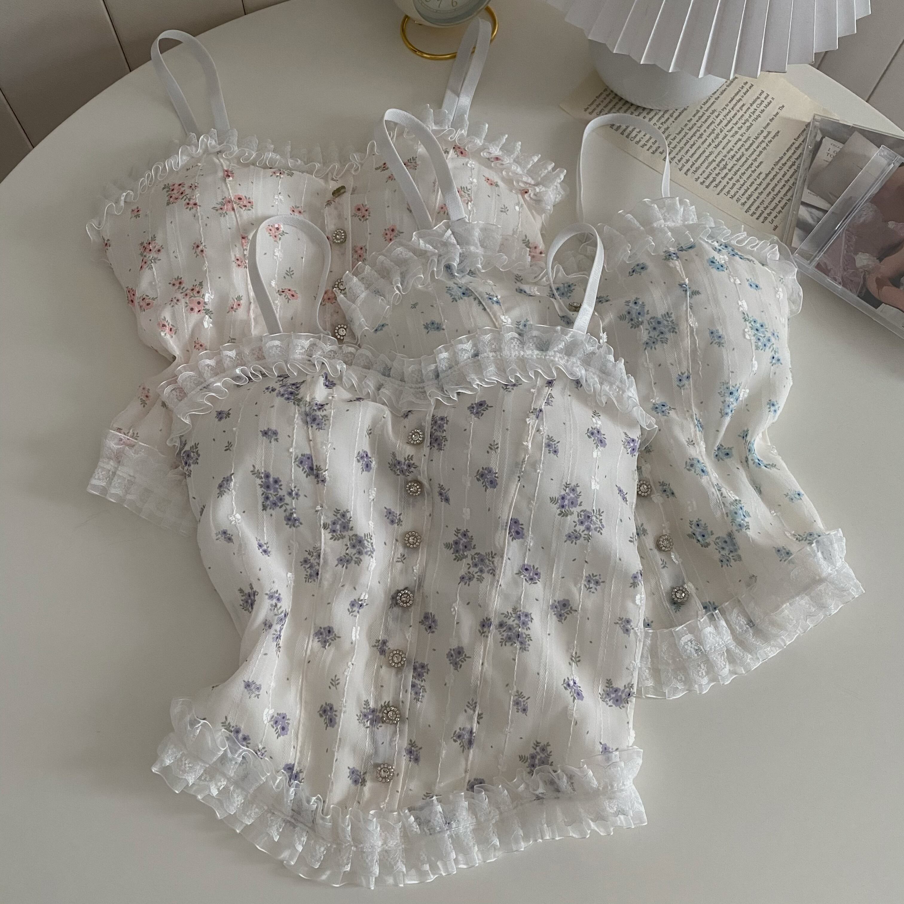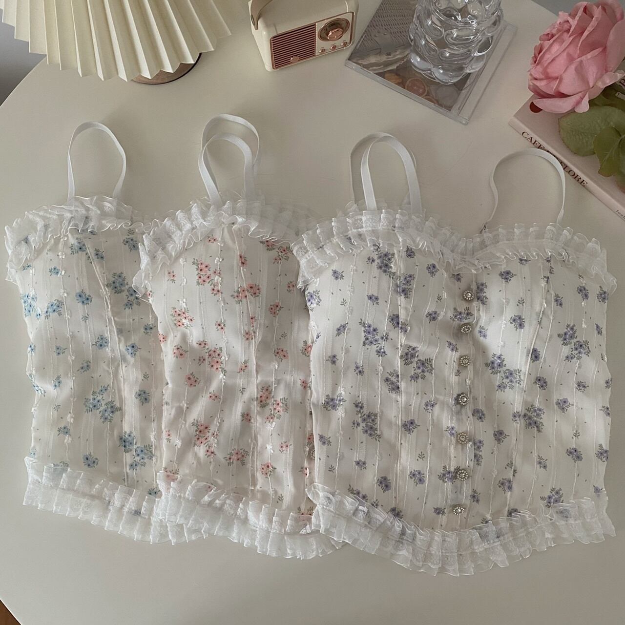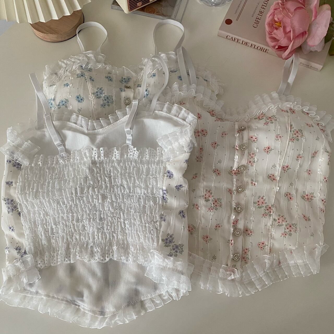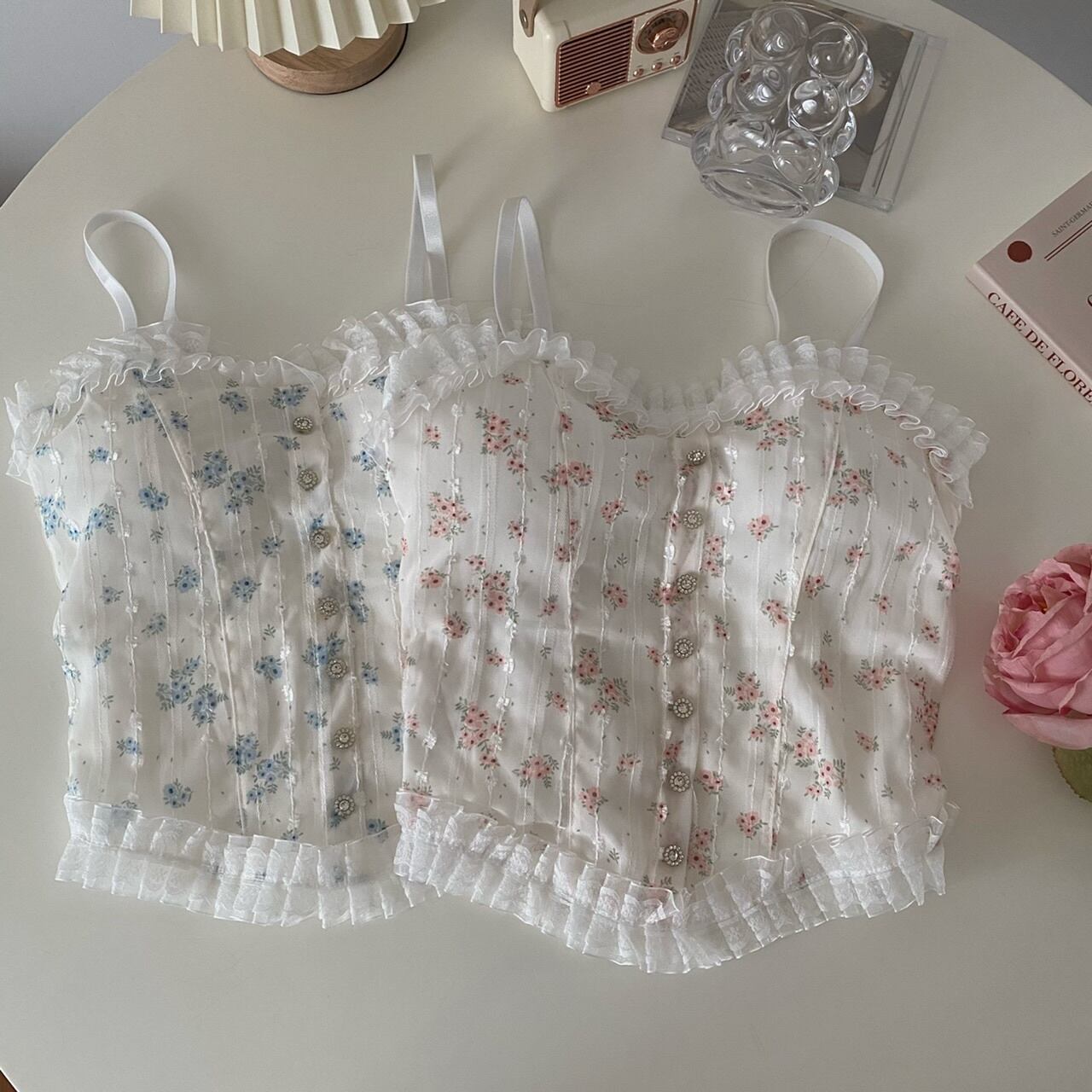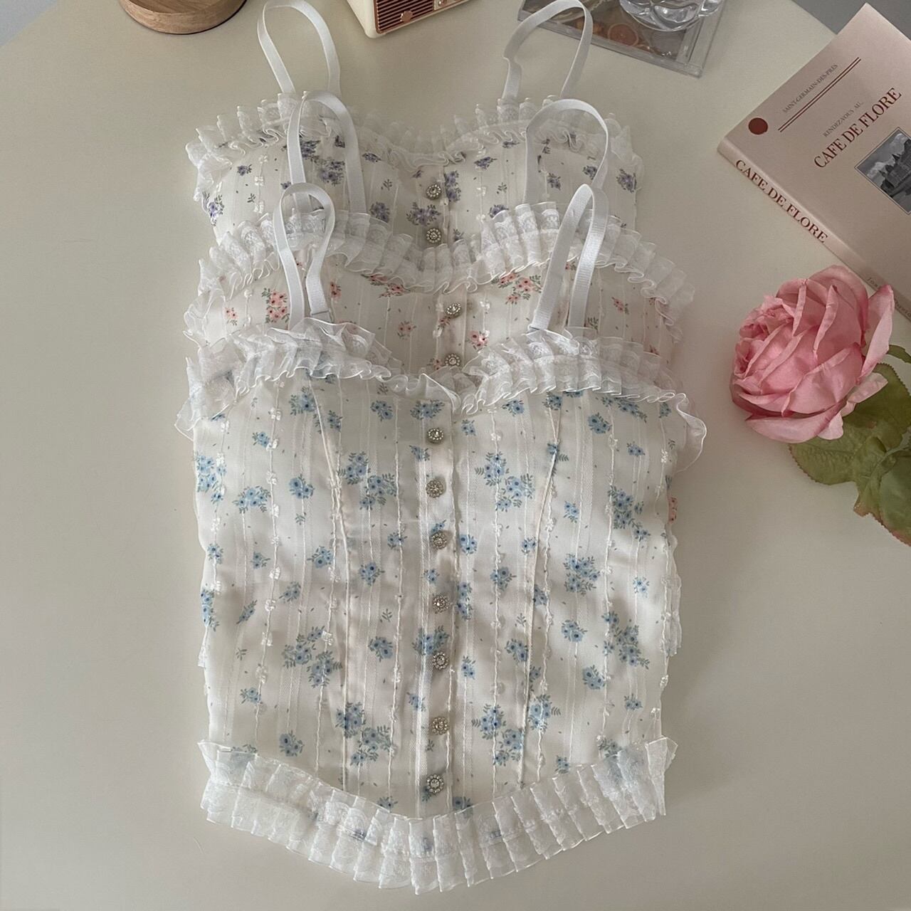 レースフローラルサマーノースリーブトップス 夏物 花柄 s576180259580524