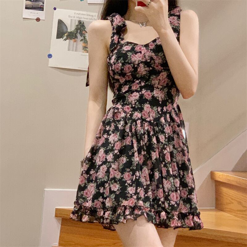 フローラルドレス サマーウェストショートスカート 大人ガーリー スウィート キュート カジュアル 夏物 花柄 s5761636522779