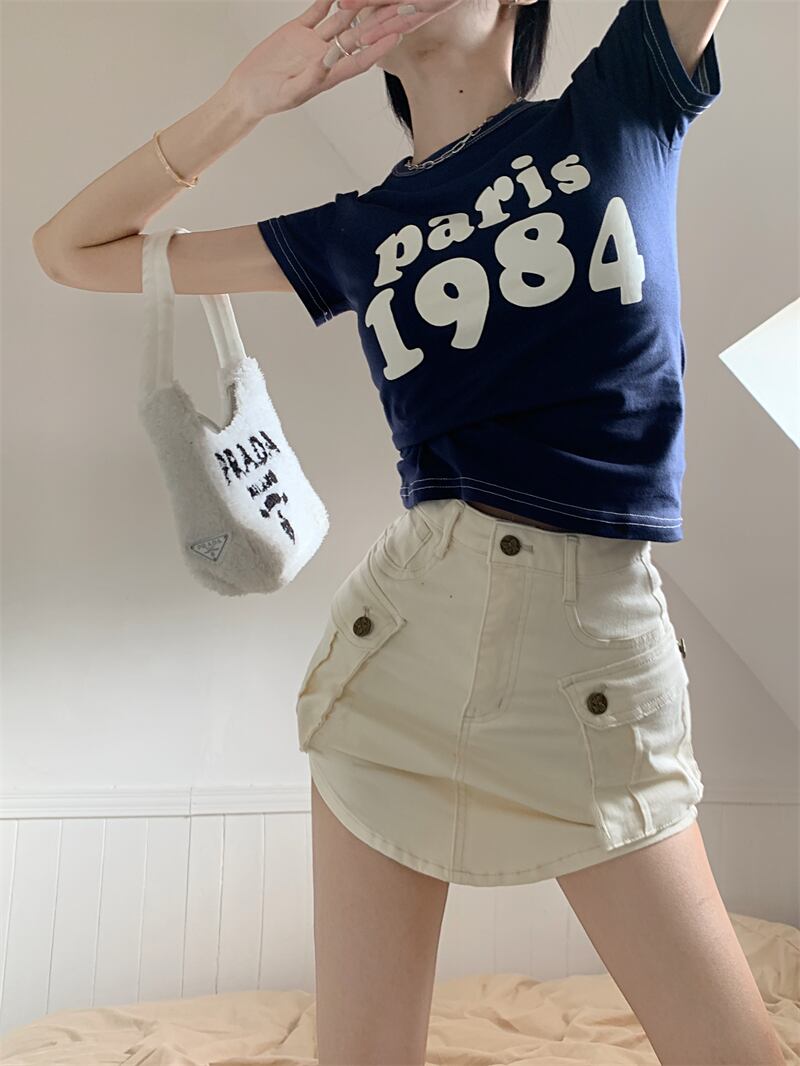 色:ホワイトT,ネイビーブルーT,Coconutクリームアプリコットスカート,CaliforniaSunsetスカート