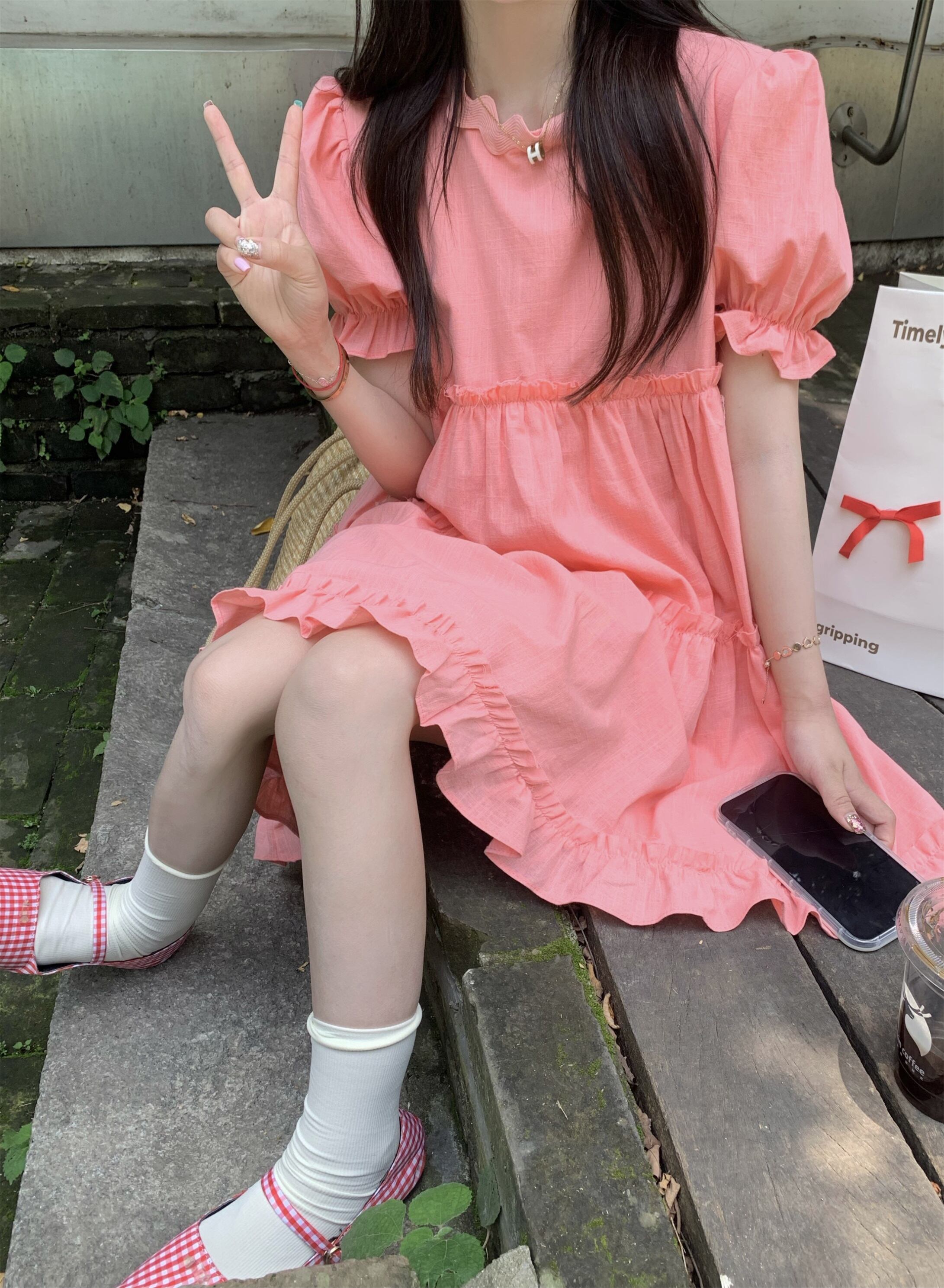 ドレス サマールーズスリーブスカート ピンク 大人ガーリー スウィート キュート カジュアル 夏物 s576160597160952