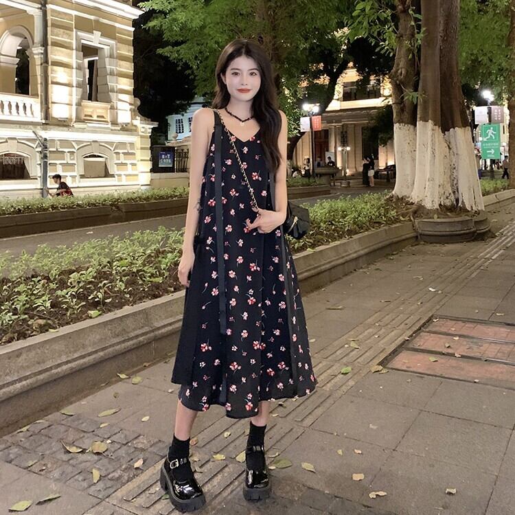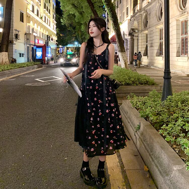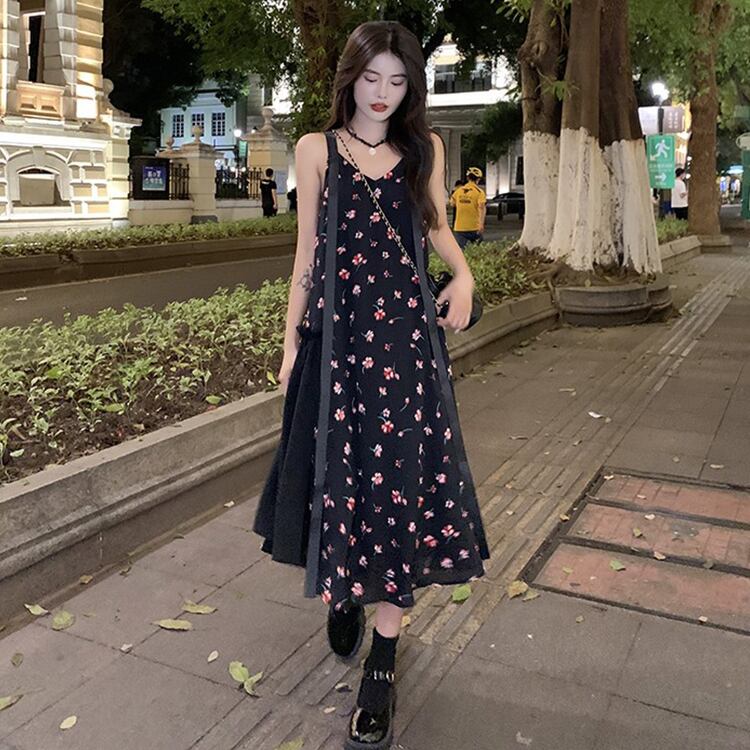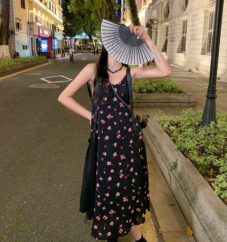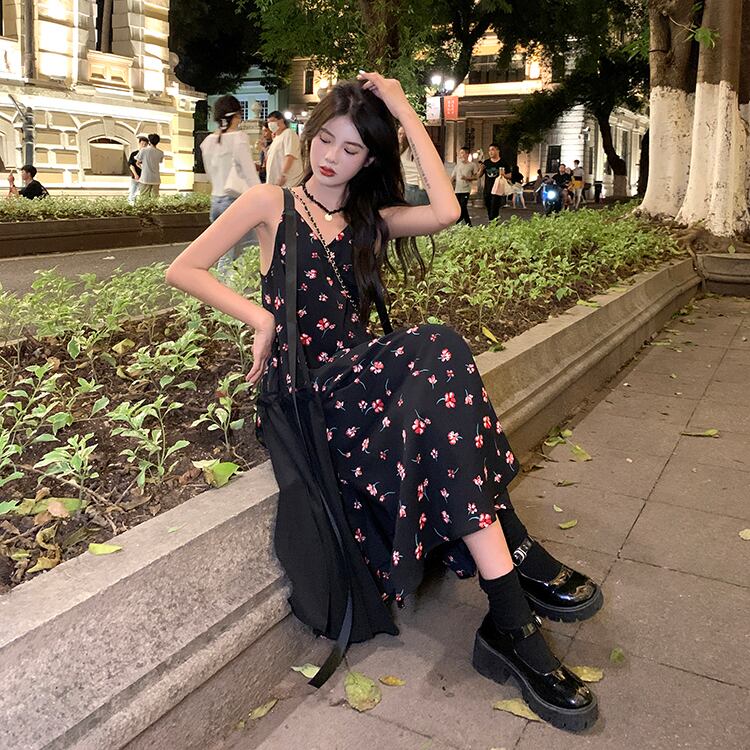 Vネックフローラルドレス サマーロングスカート 夏物 花柄 s576145762447893