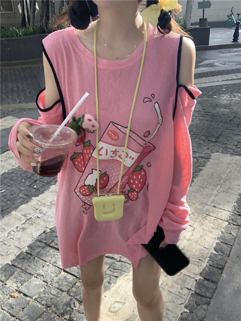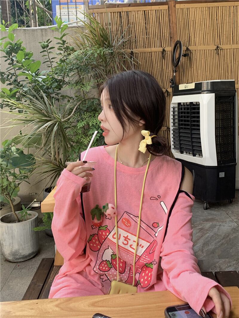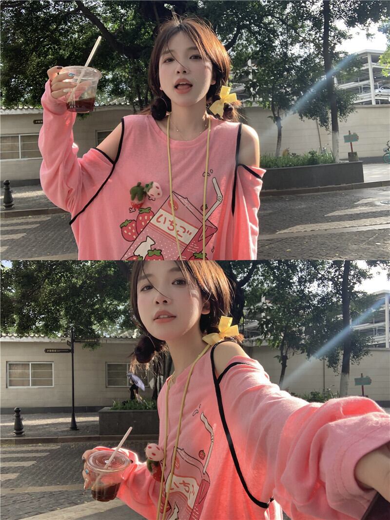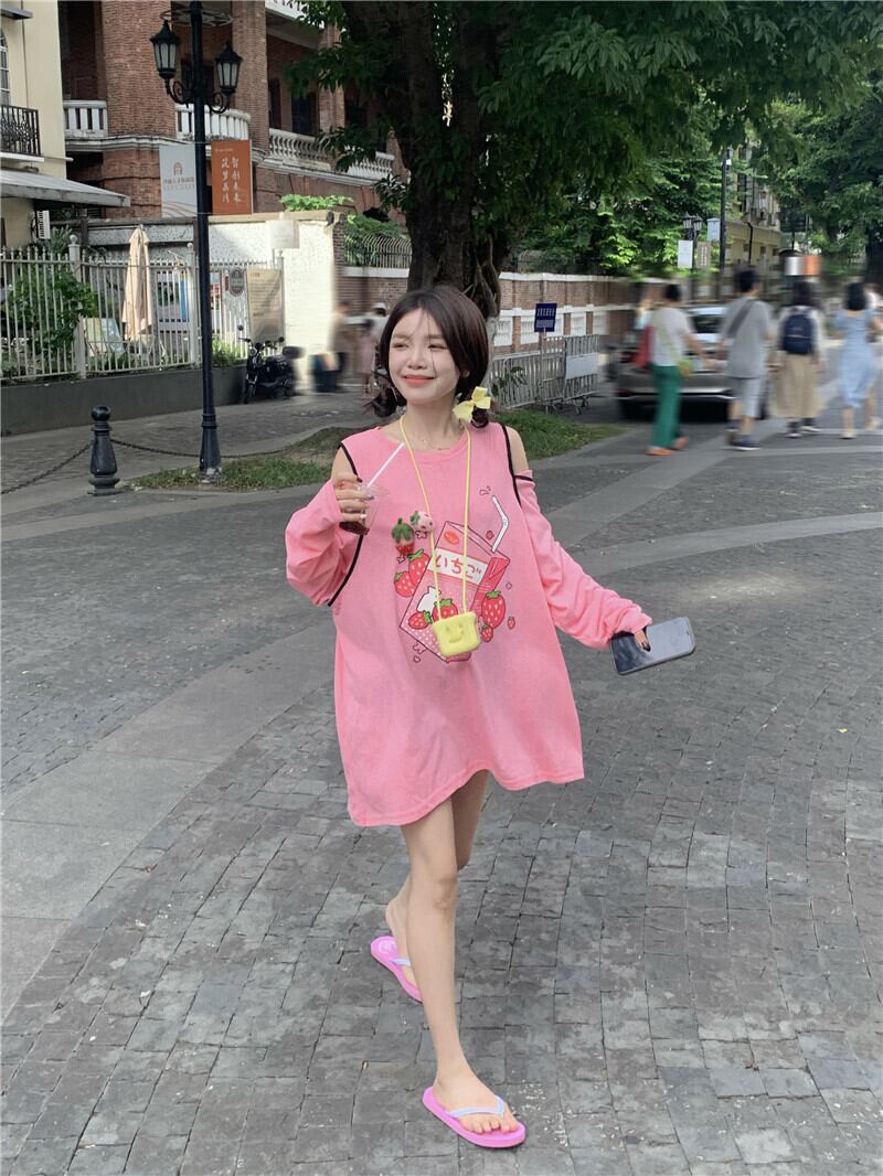 ブラウス Tシャツ サマー薄手ルーズトップス ロング ピンク 夏物 s576115959171823