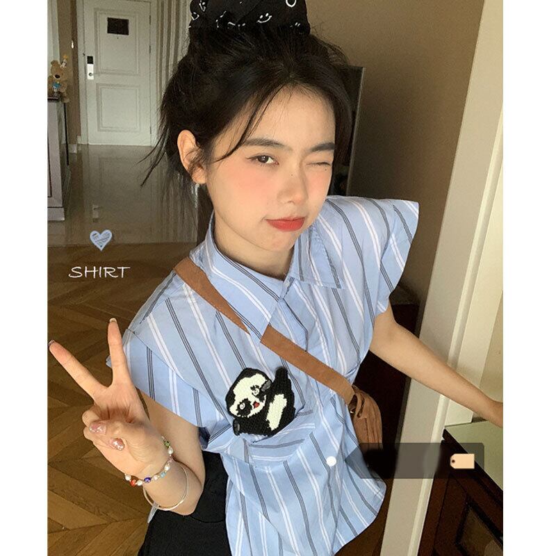ノースリーブストライプシャツ サマースタンダードスタイルトップス レトロ 夏物 s576128898060381