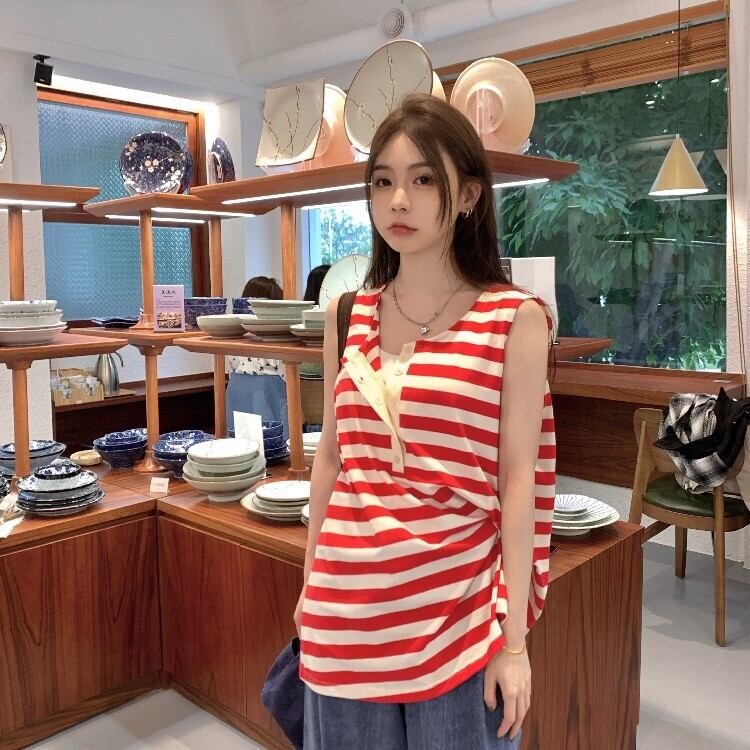 ストライプノースリーブTシャツ サマールーズカジュアルトップス 夏物 s576186669263065