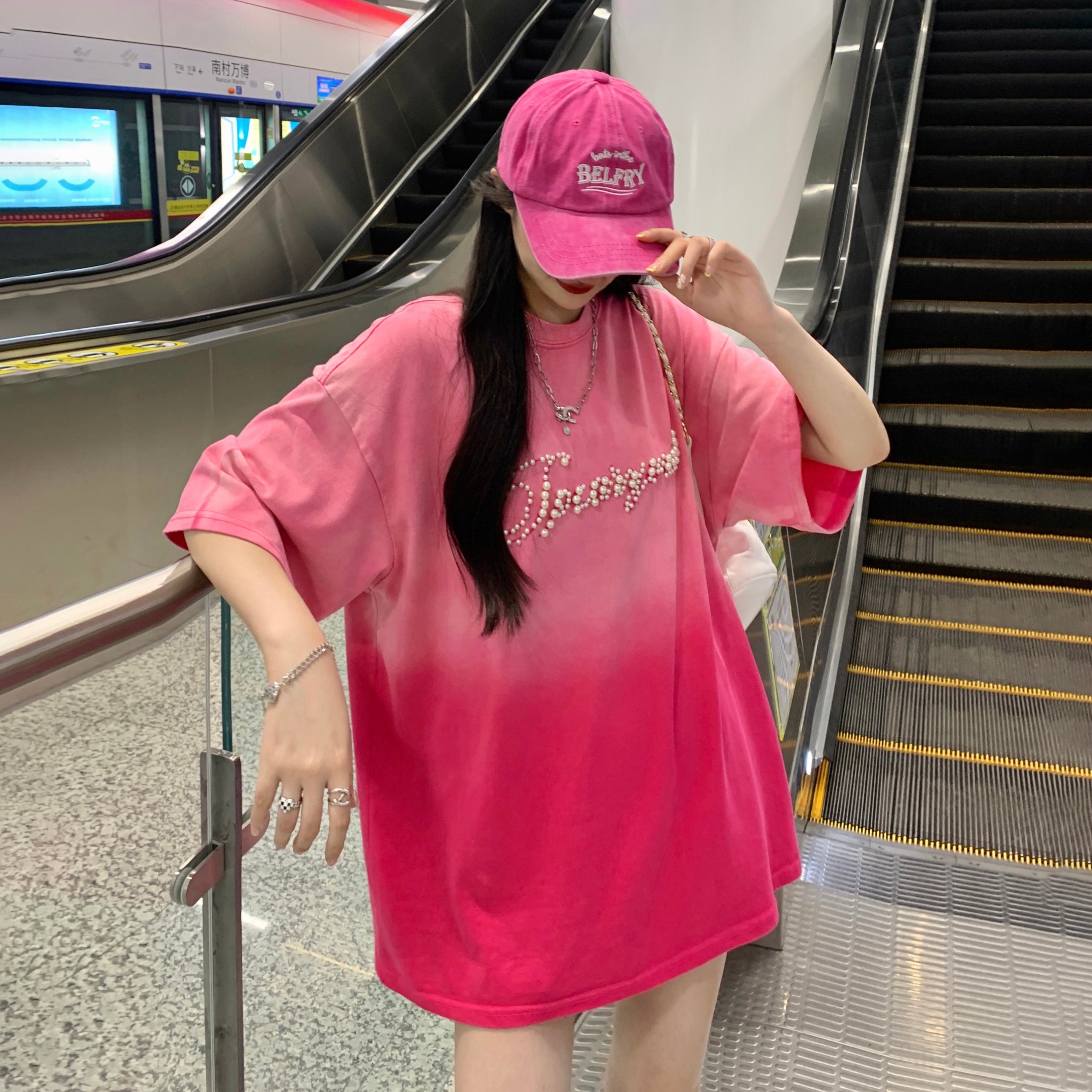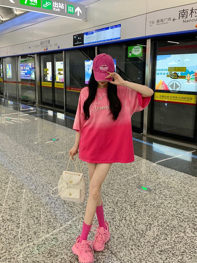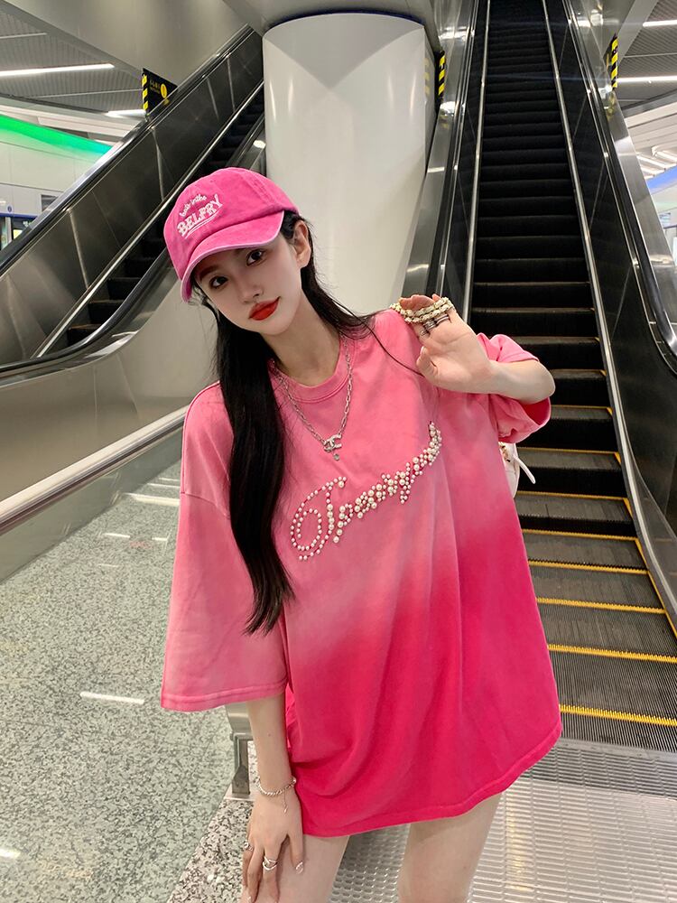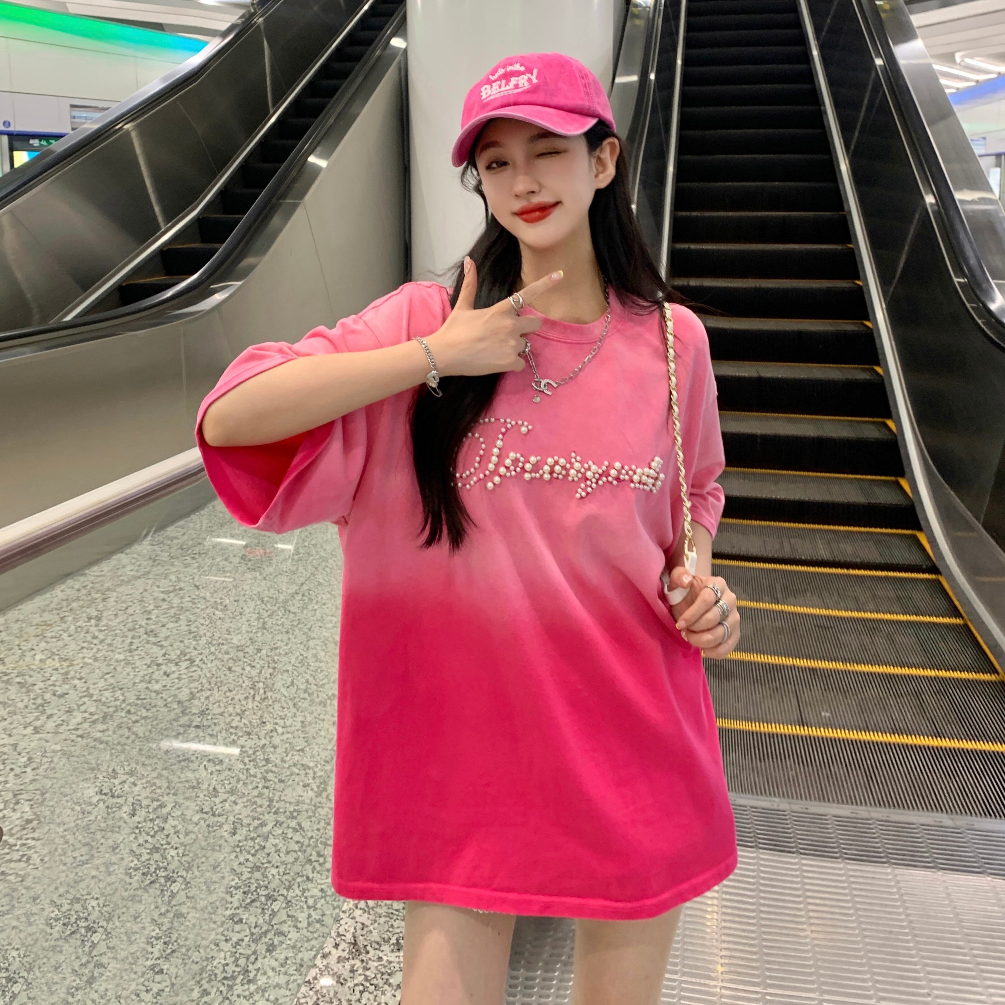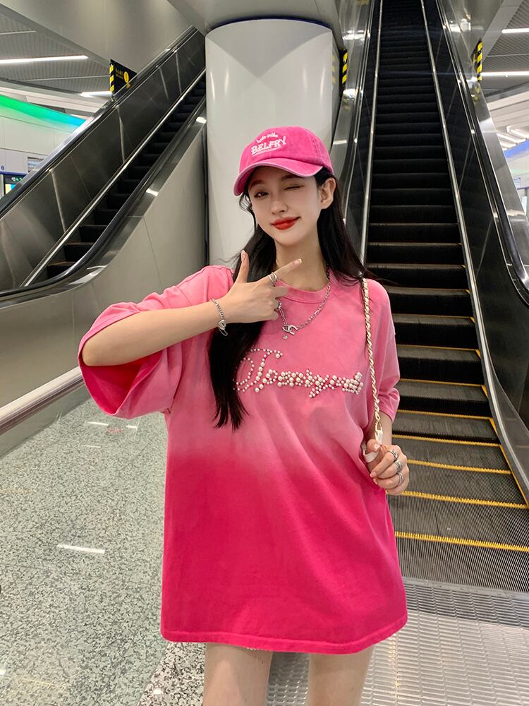 カラーTシャツ サマーレッドルーズトップス 夏物 s576126925331523