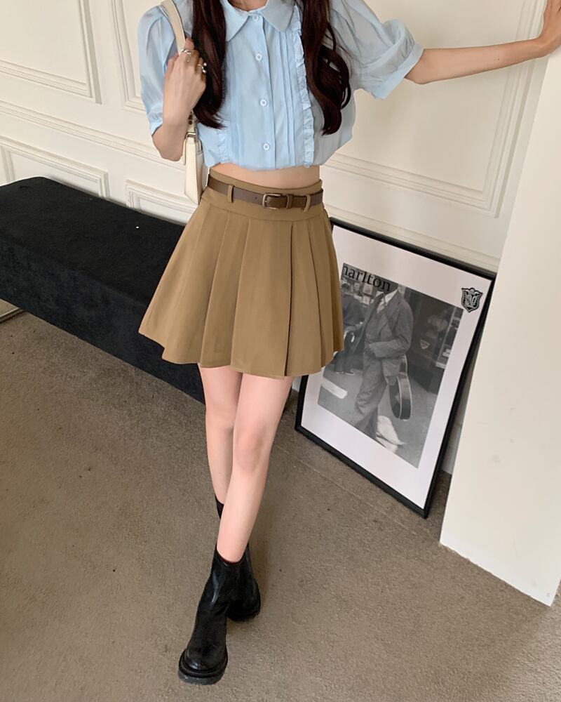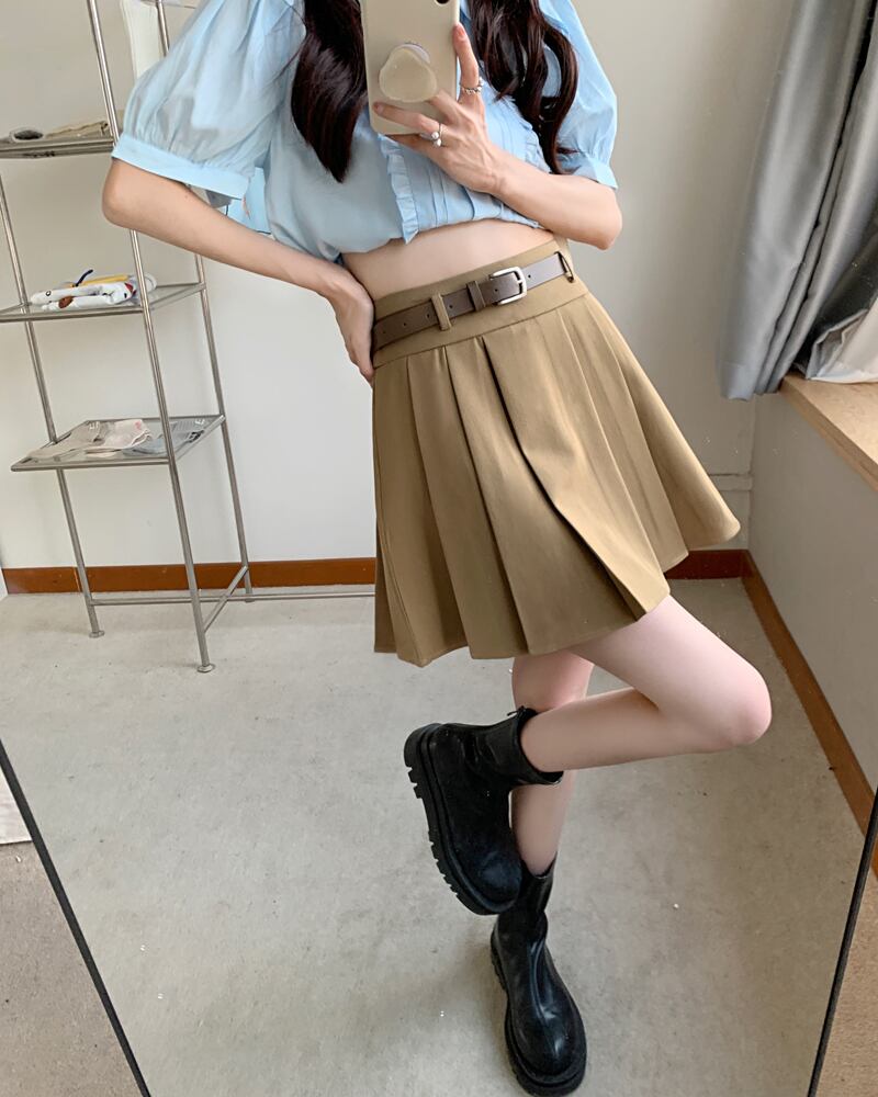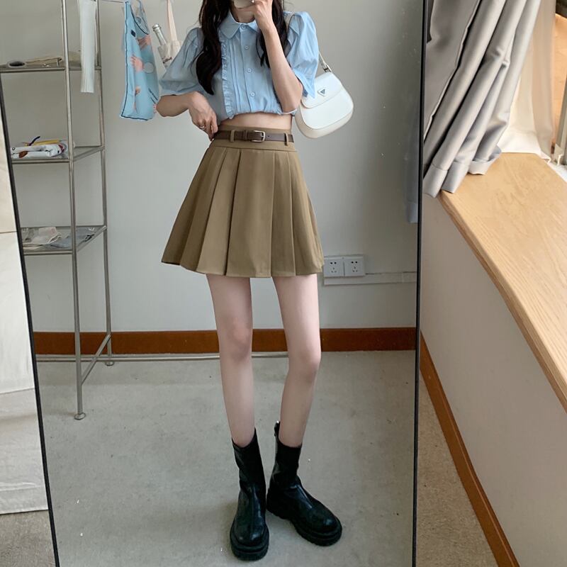 カーキプリーツスカート サマーAラインショート 夏物 s576124750383019