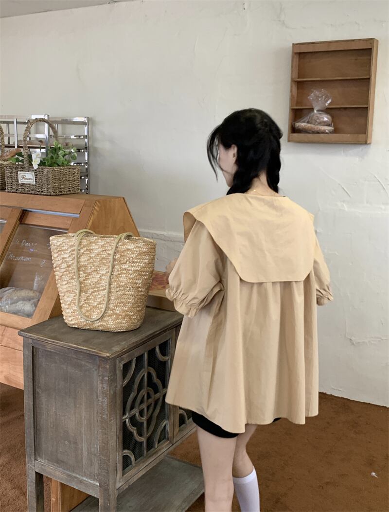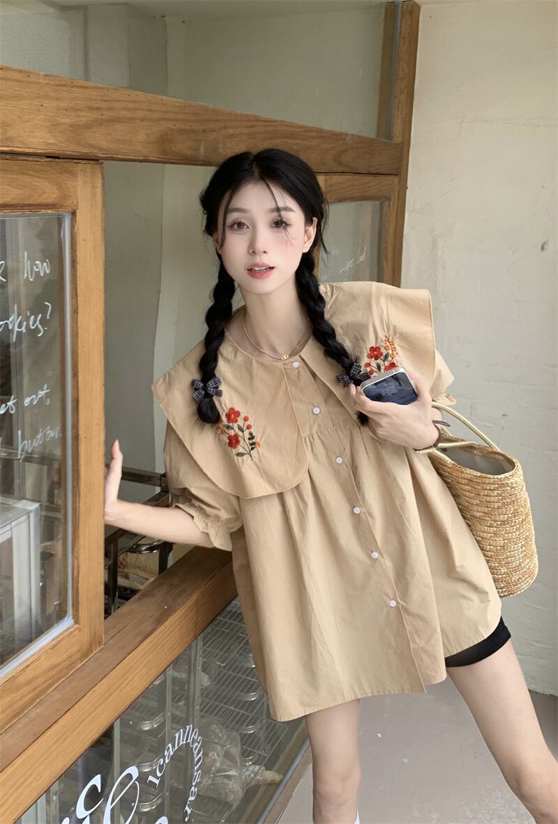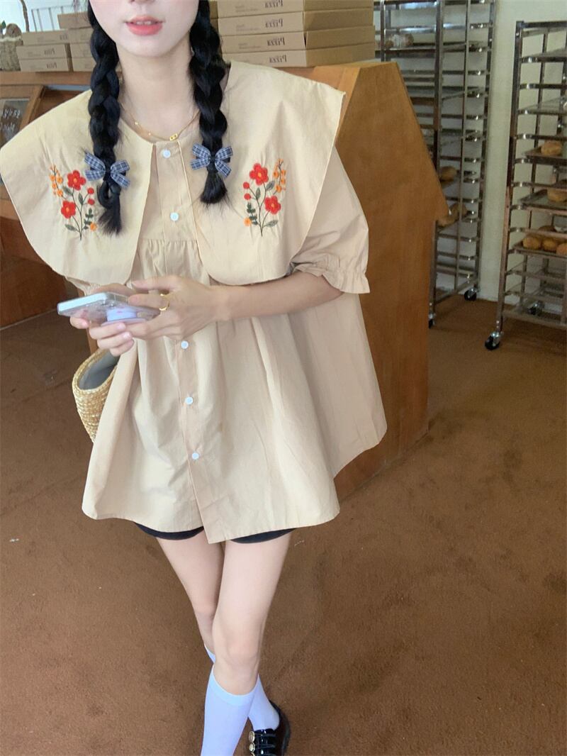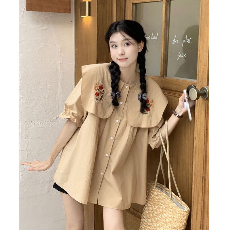 カラートップス サマースタイルスリーブシャツ 大人ガーリー スウィート キュート カジュアル 夏物 s576197214392644