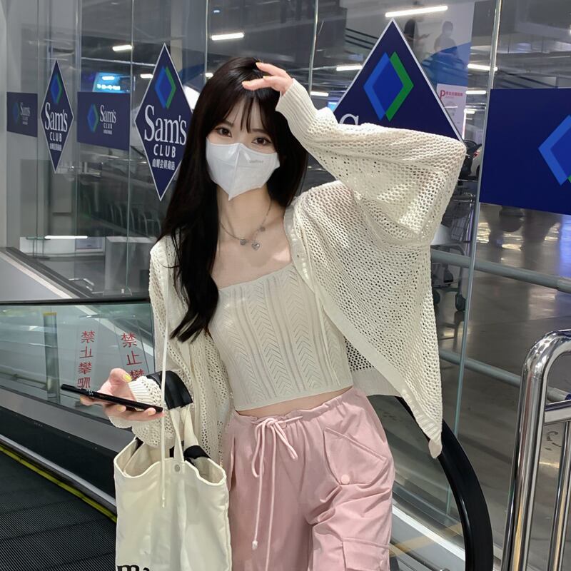 ニットカーディガンサマー薄手ジャケット トップス ロング 夏物 s576151652198523