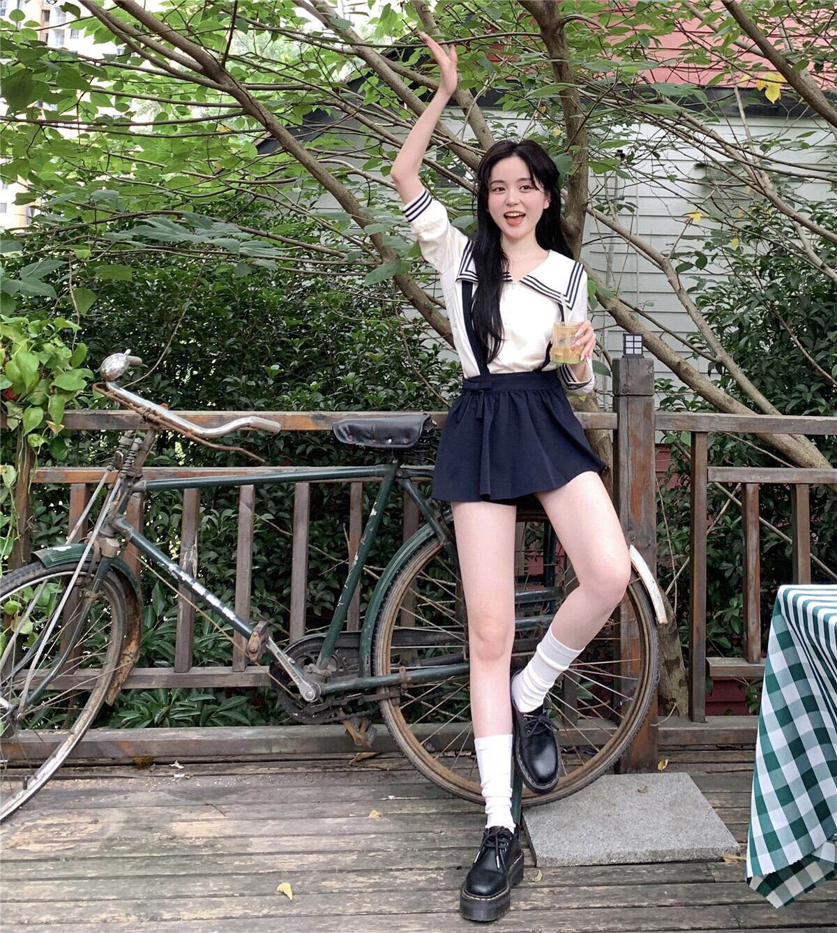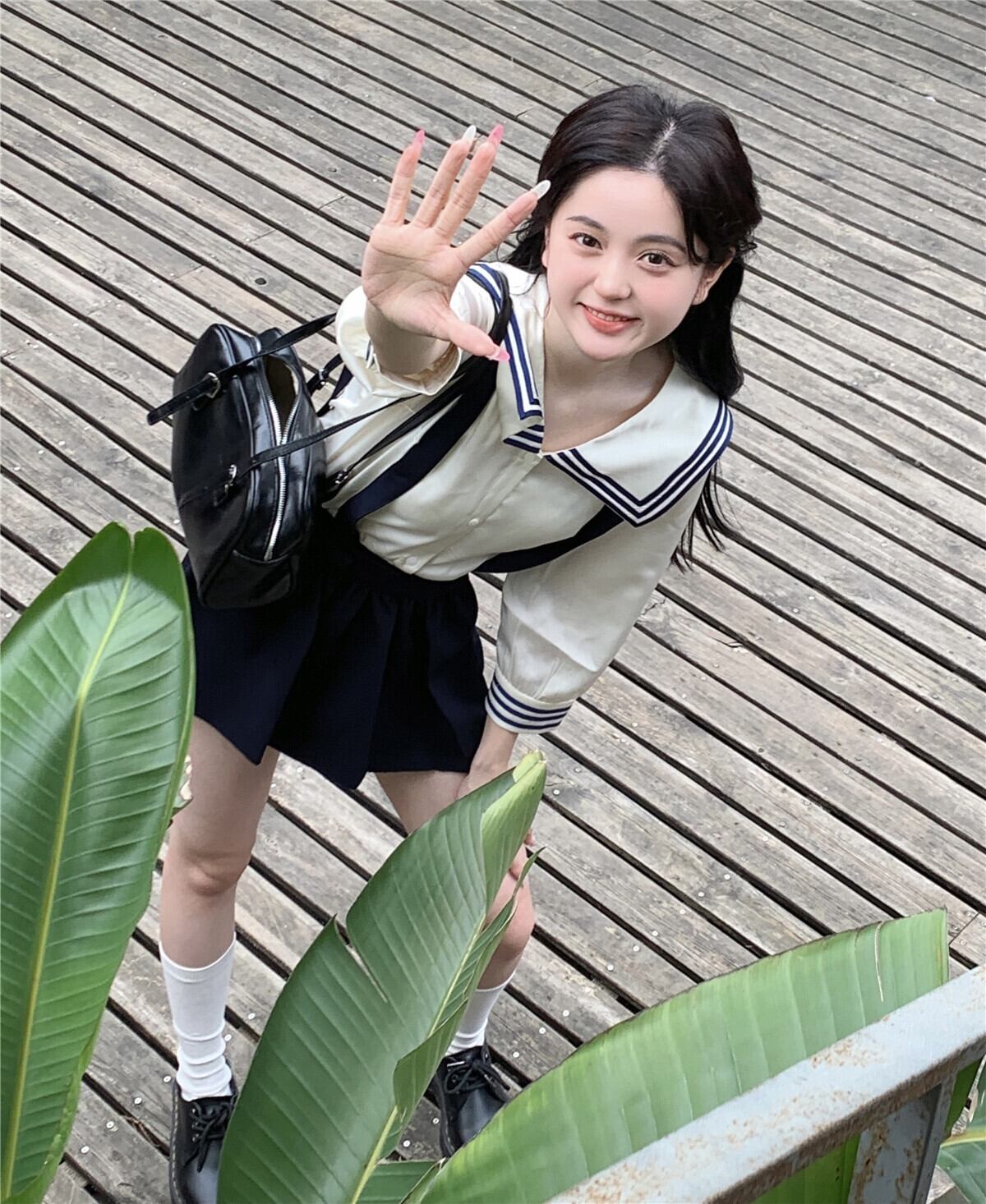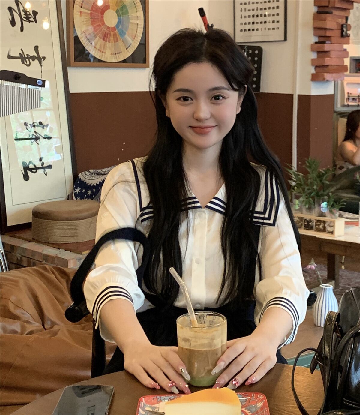 ネイビーカラーシャツ サマースリーブショートトップス 夏物 ピュア s576147113207537