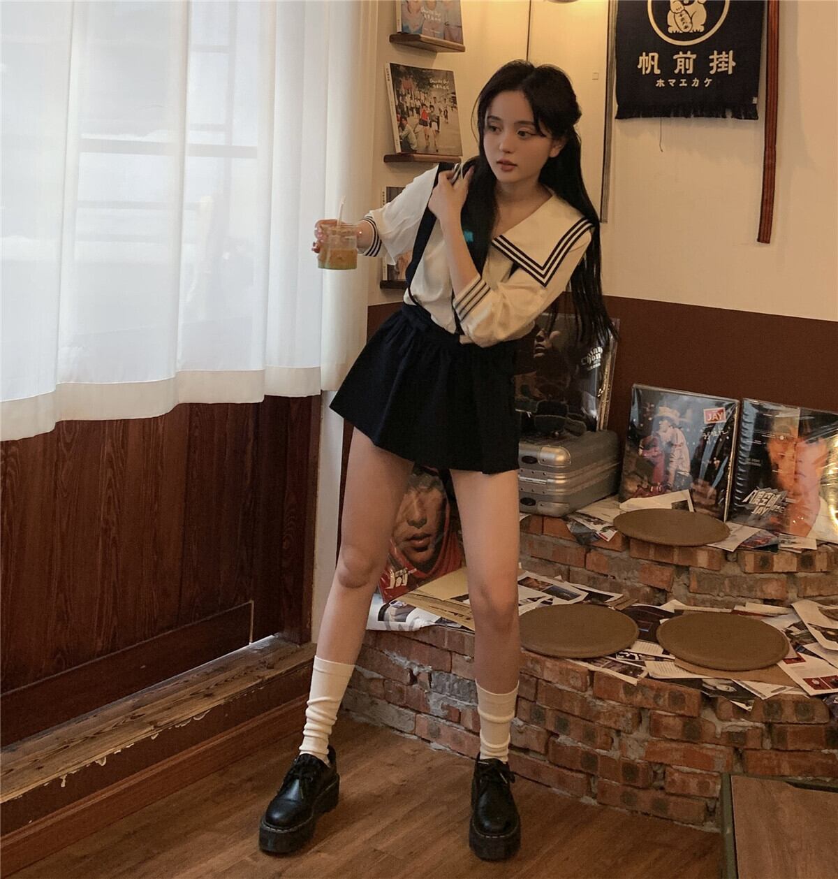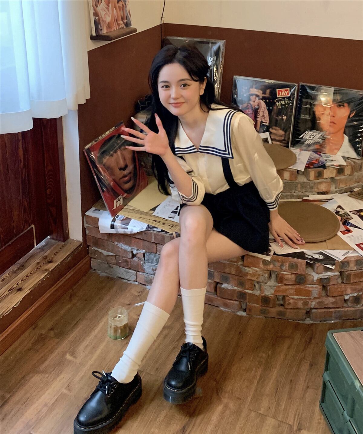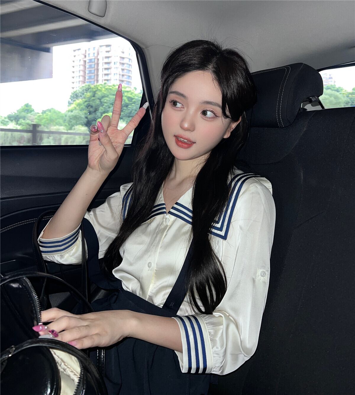 ネイビーカラーシャツ サマースリーブショートトップス 夏物 ピュア s576147113207537