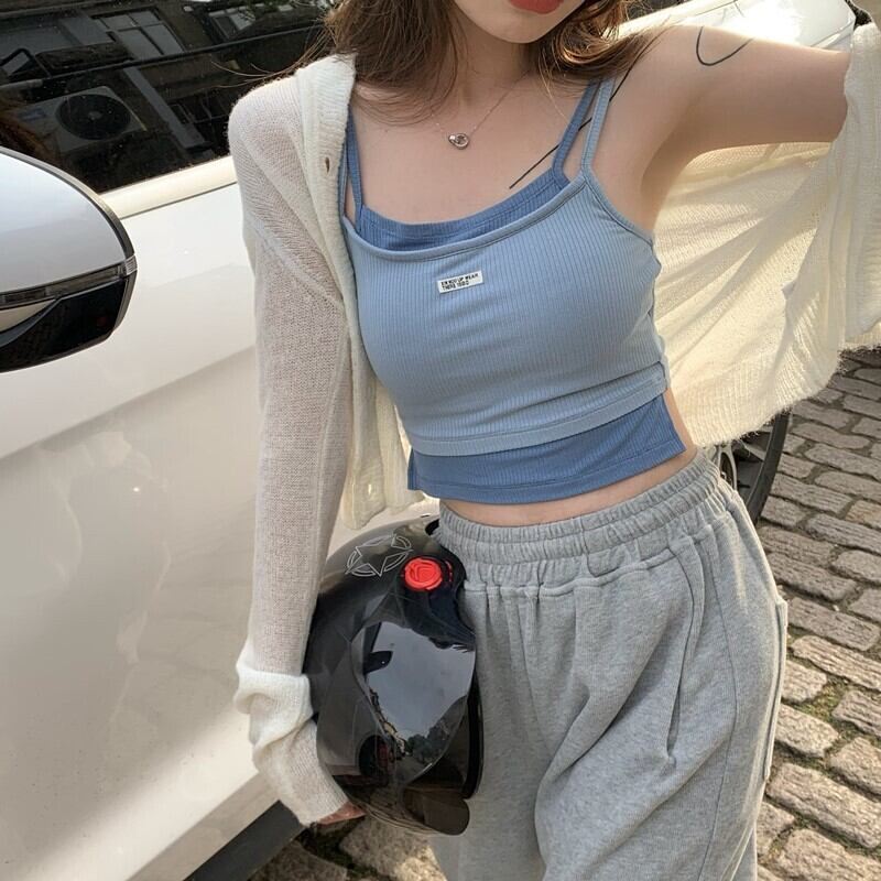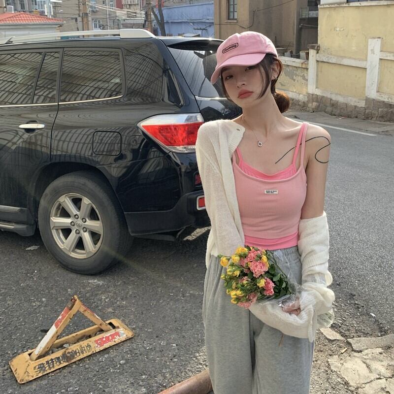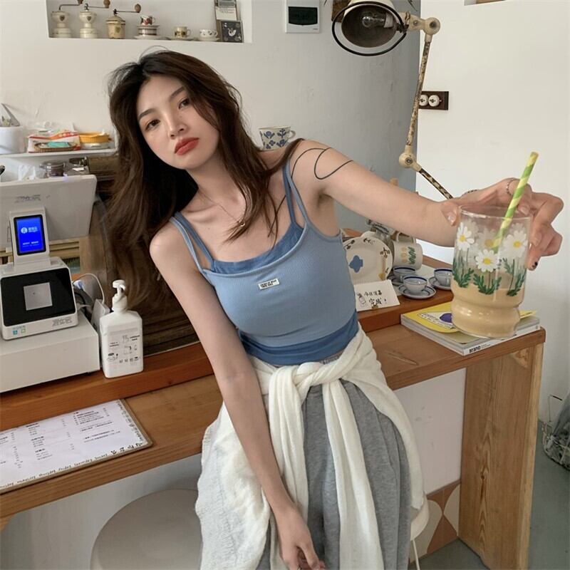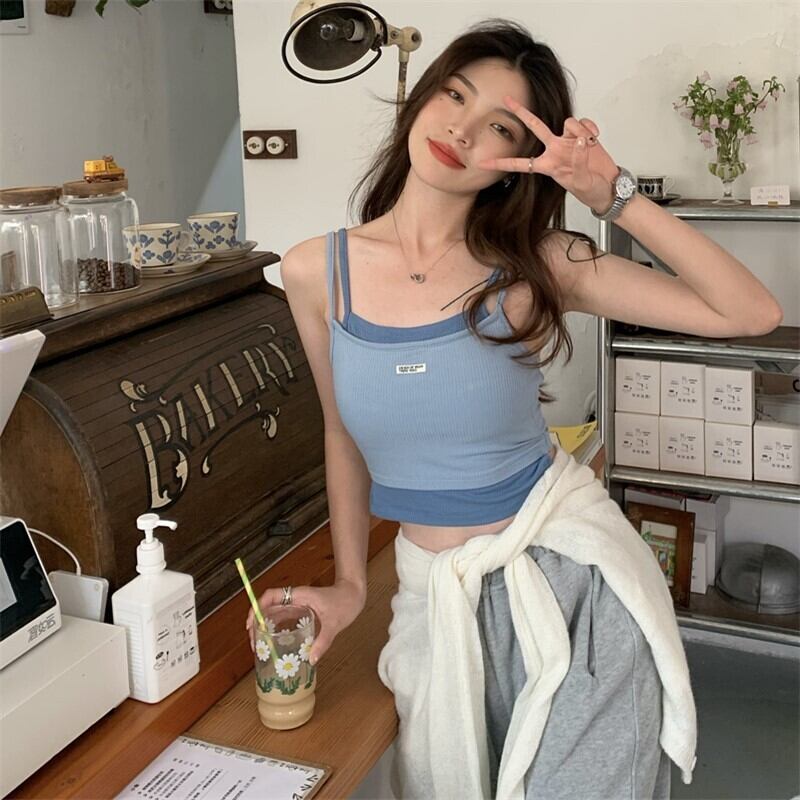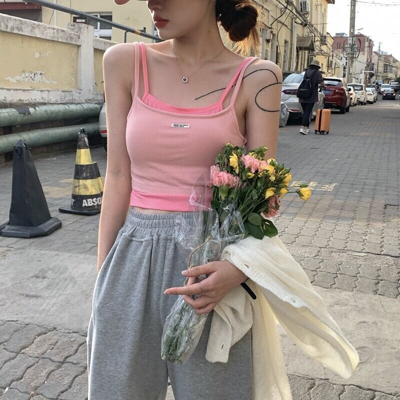 サマースリムレッドノースリーブショートトップス 夏物 s576135292906673