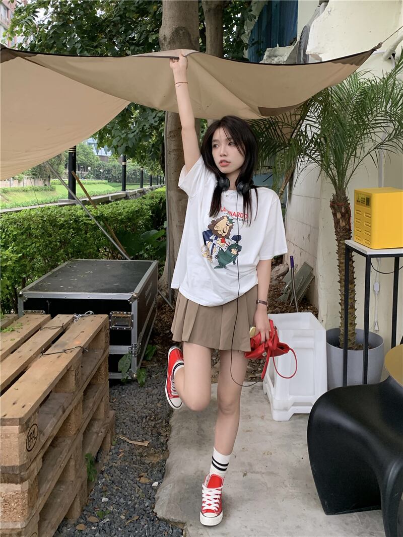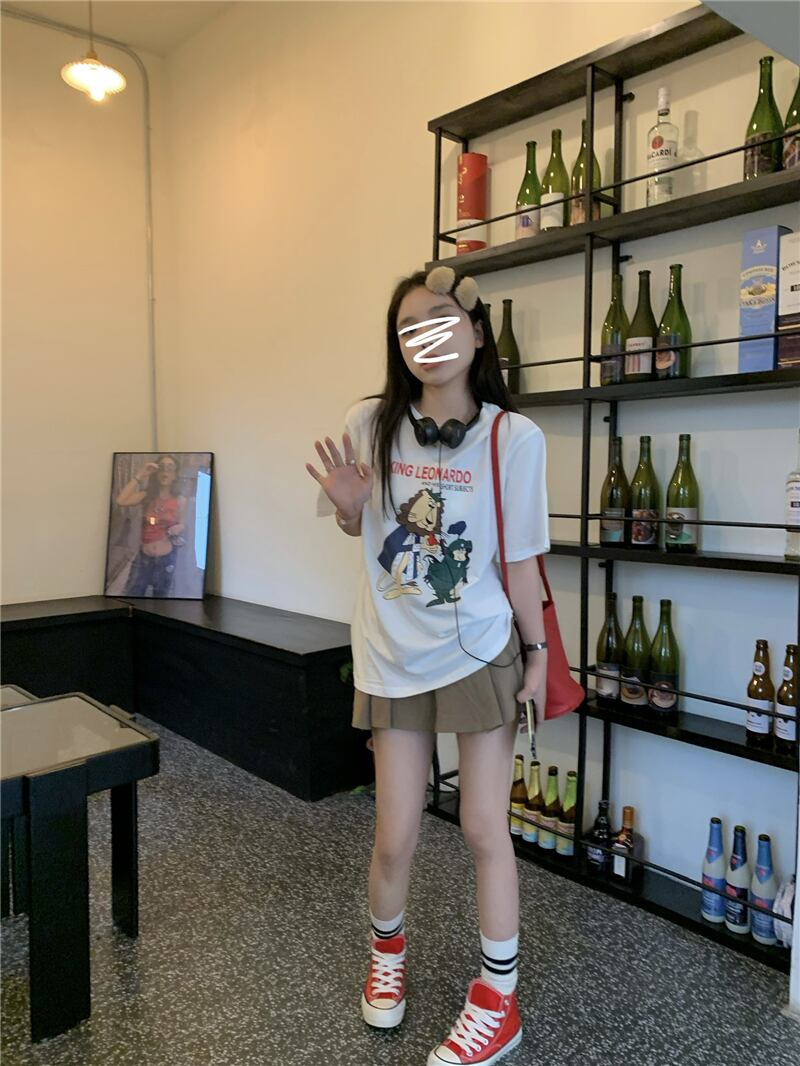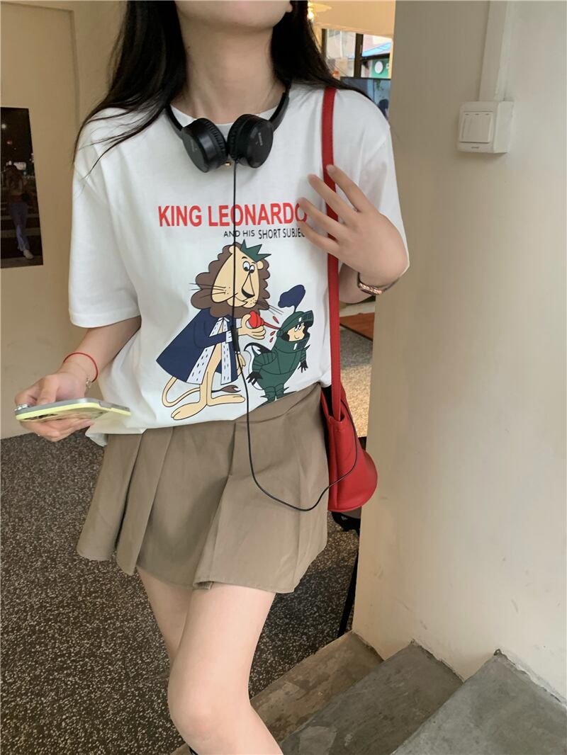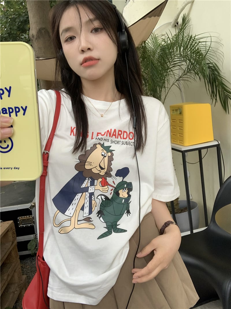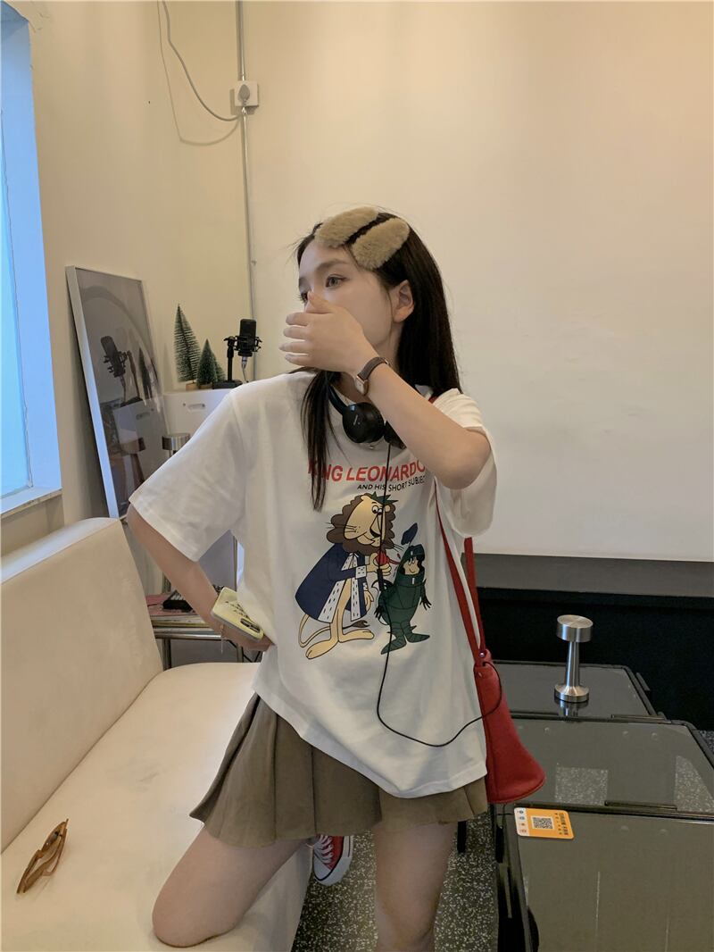 ルーズプリントTシャツ サマーラウンドネック薄手トップス 夏物 Oネック s576142973601127