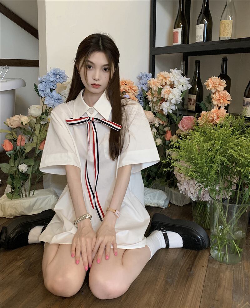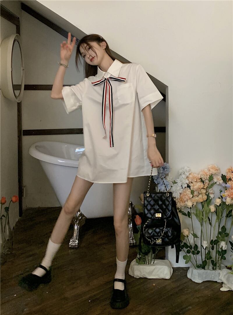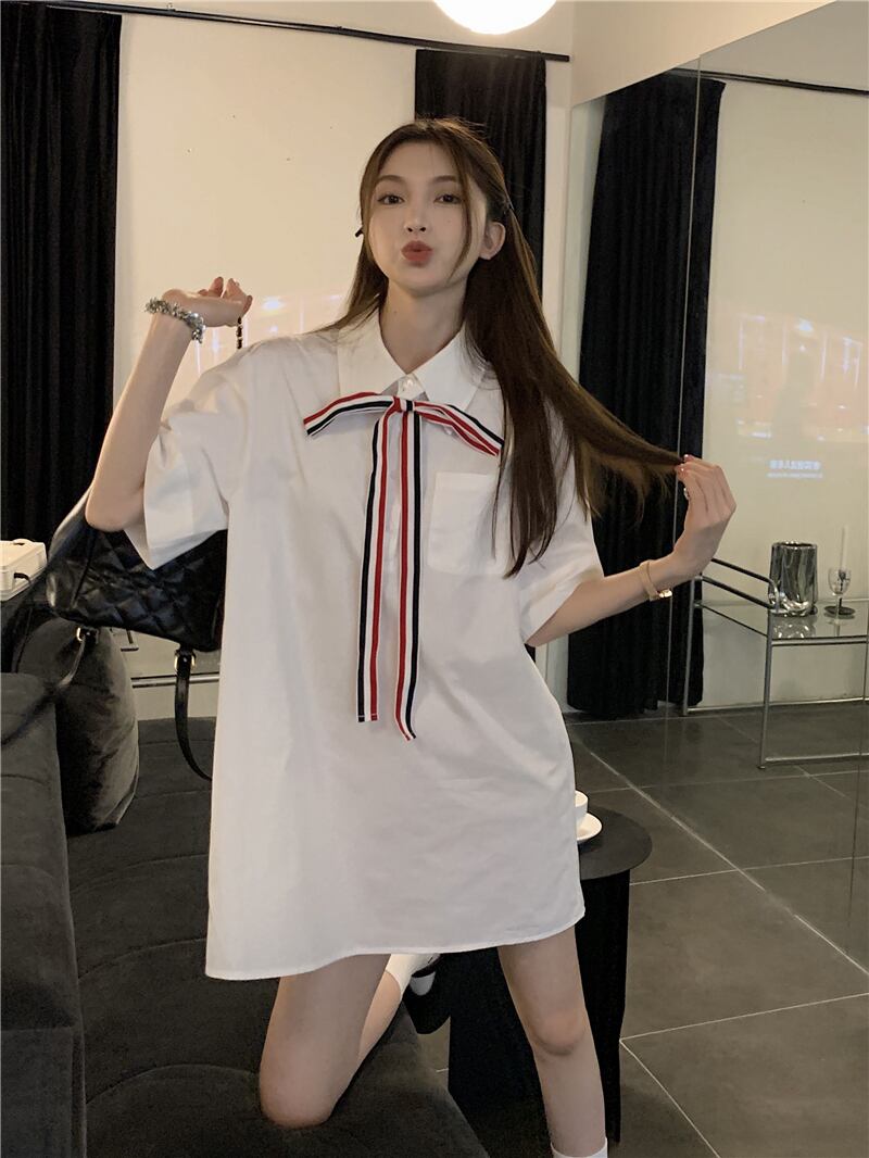 ホワイトシャツ サマースタイルルーズトップス 大人ガーリー スウィート キュート カジュアル 夏物 s576123280776827