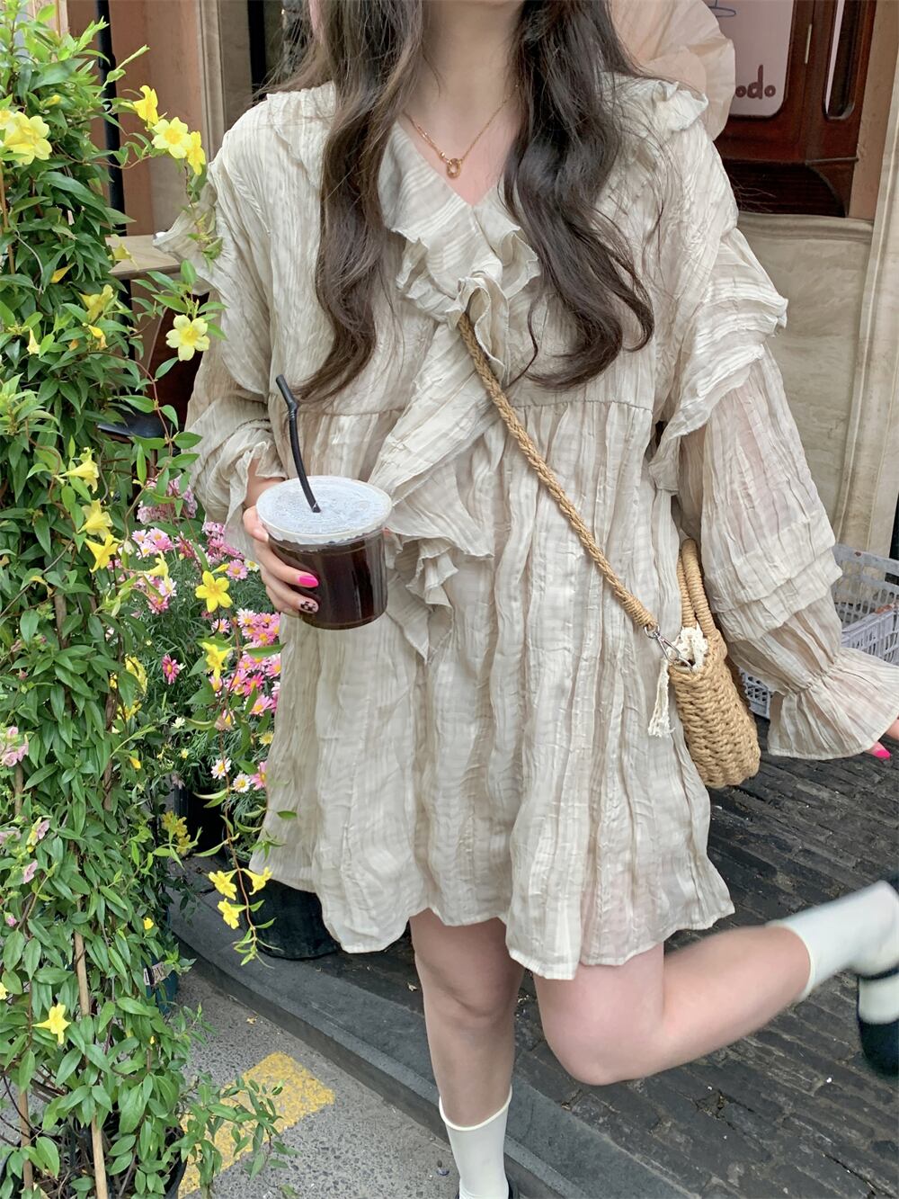 Vネックドレス サマースカート Aラインショート 夏物 s576162267453350