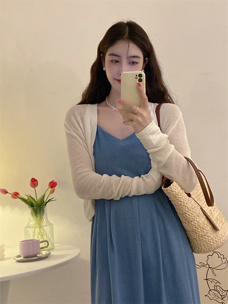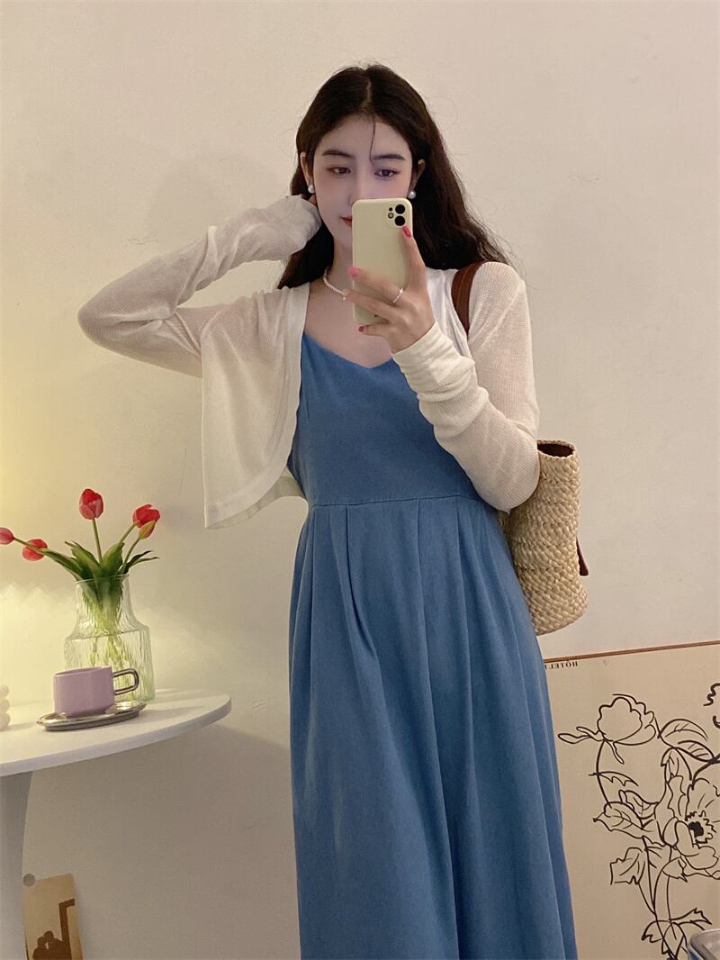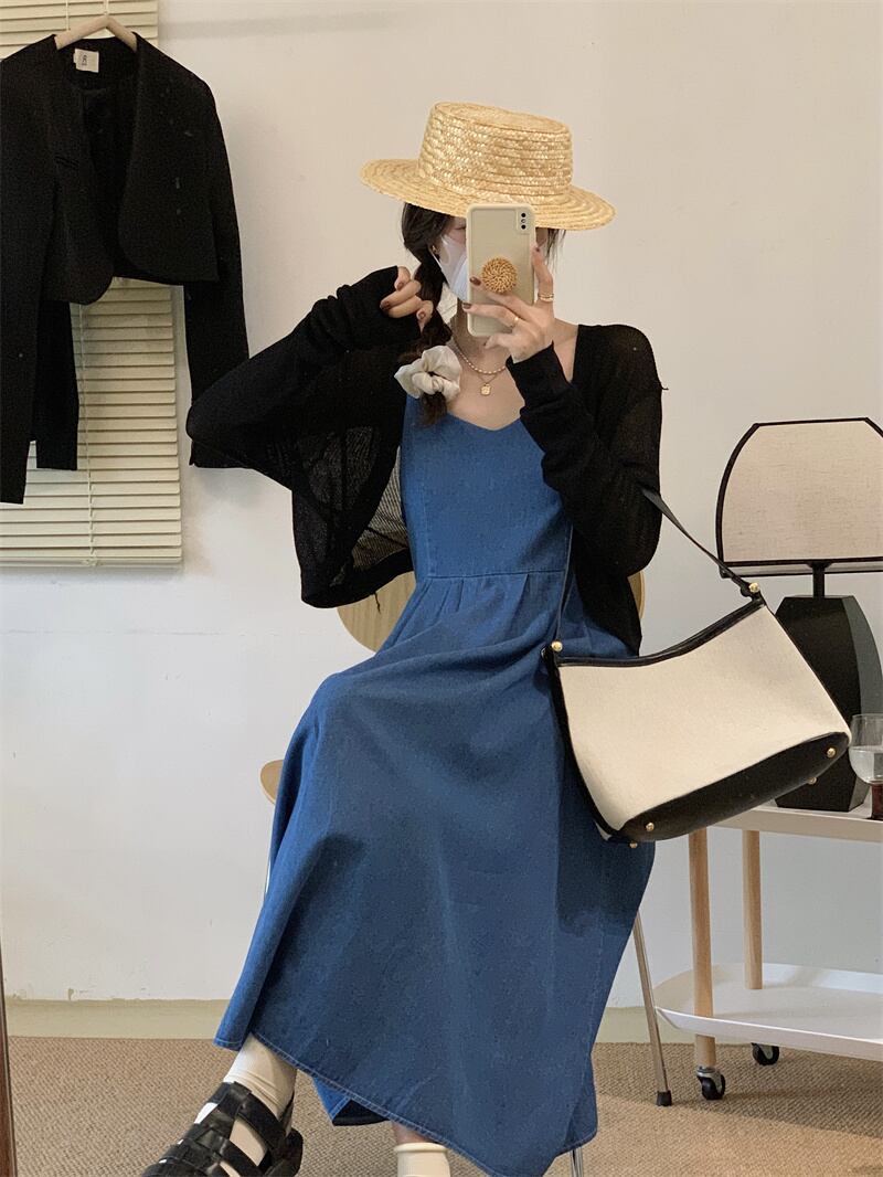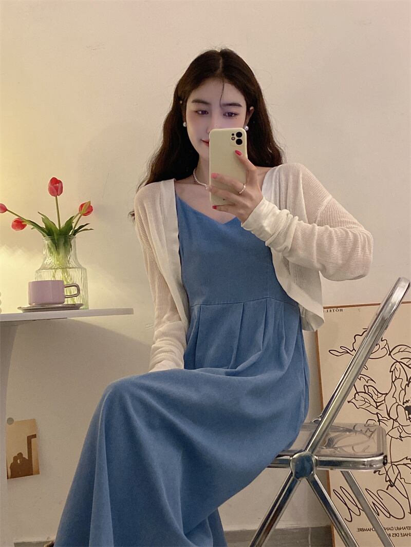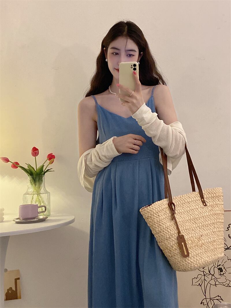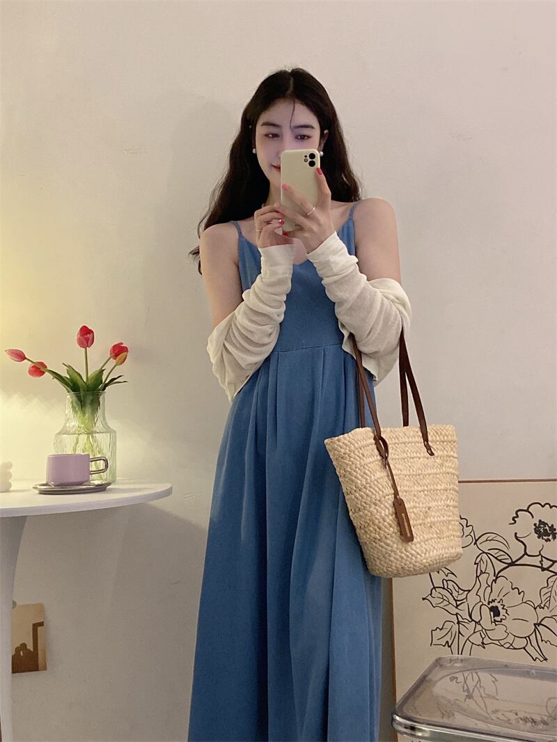 ブルースカート ノースリーブドレス スリムサマーロング 夏物 s576148228546223