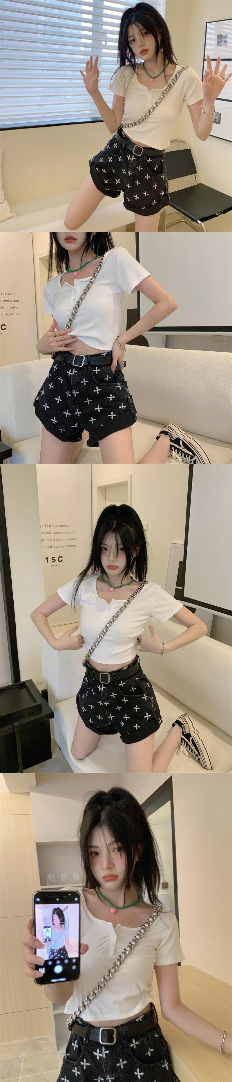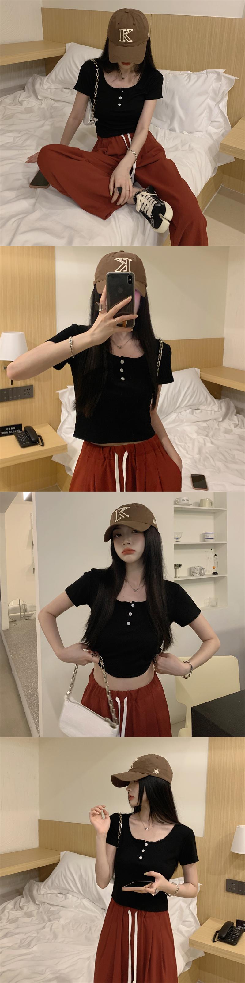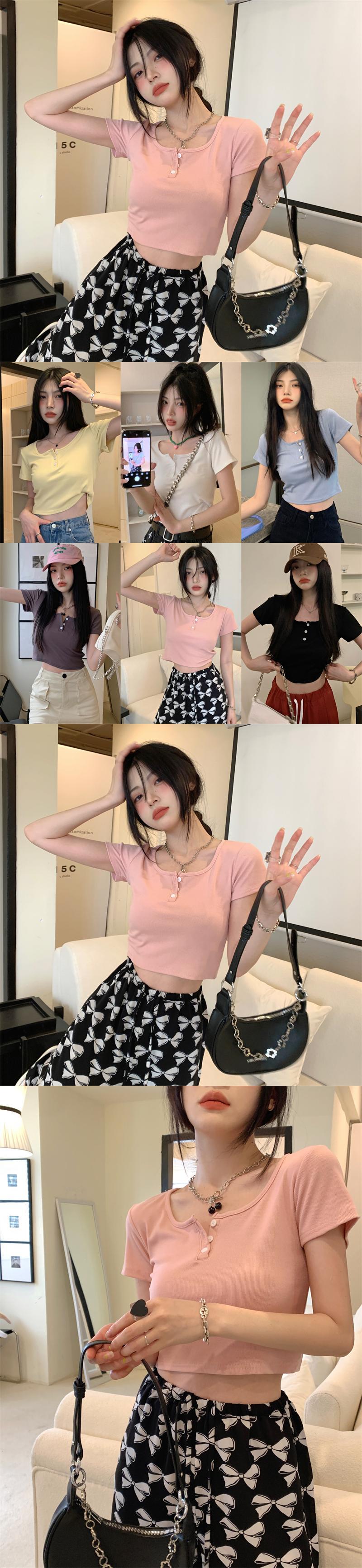 ブラックTシャツ サマークロップトップ トップス 大人ガーリー スウィート キュート カジュアル 夏物 s576171653025971