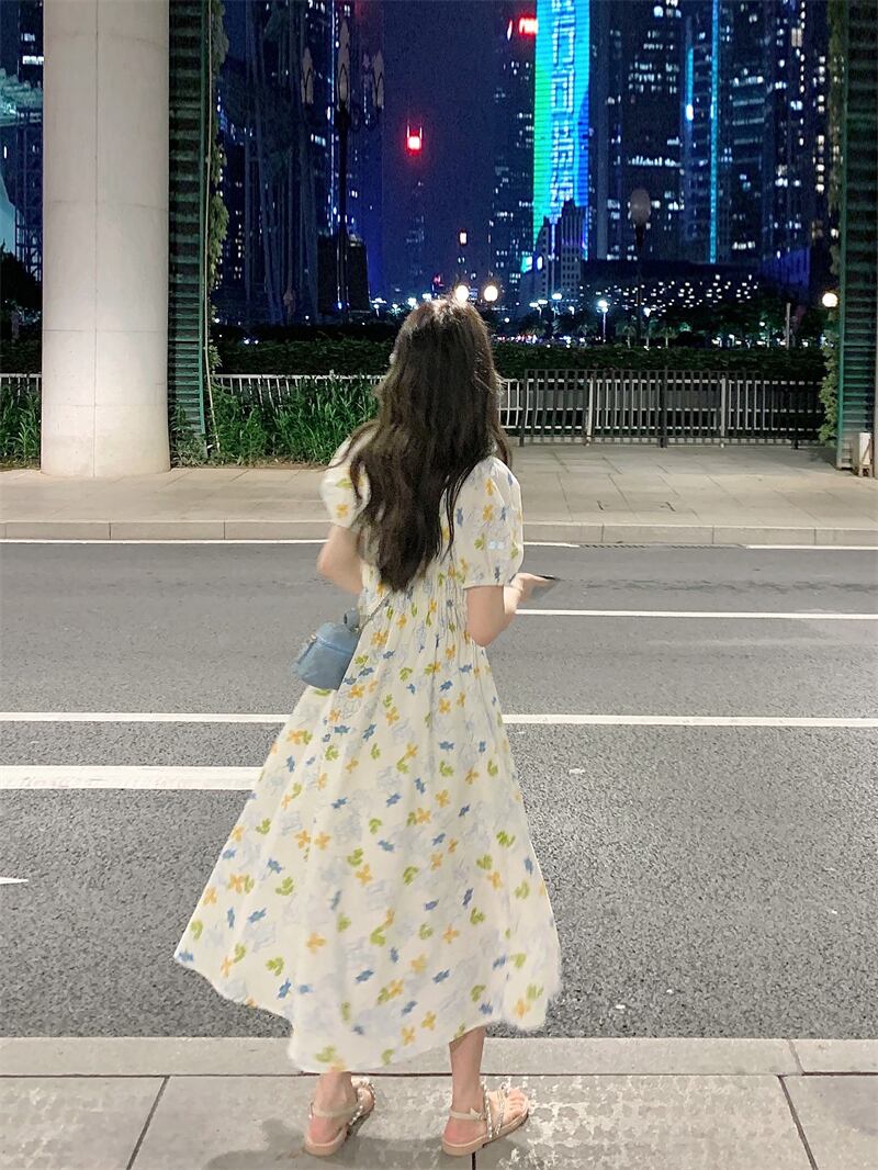 フローラルドレス サマースリーブロングスカート 大人ガーリー スウィート キュート カジュアル 夏物 花柄 スクウェア s576146585085815