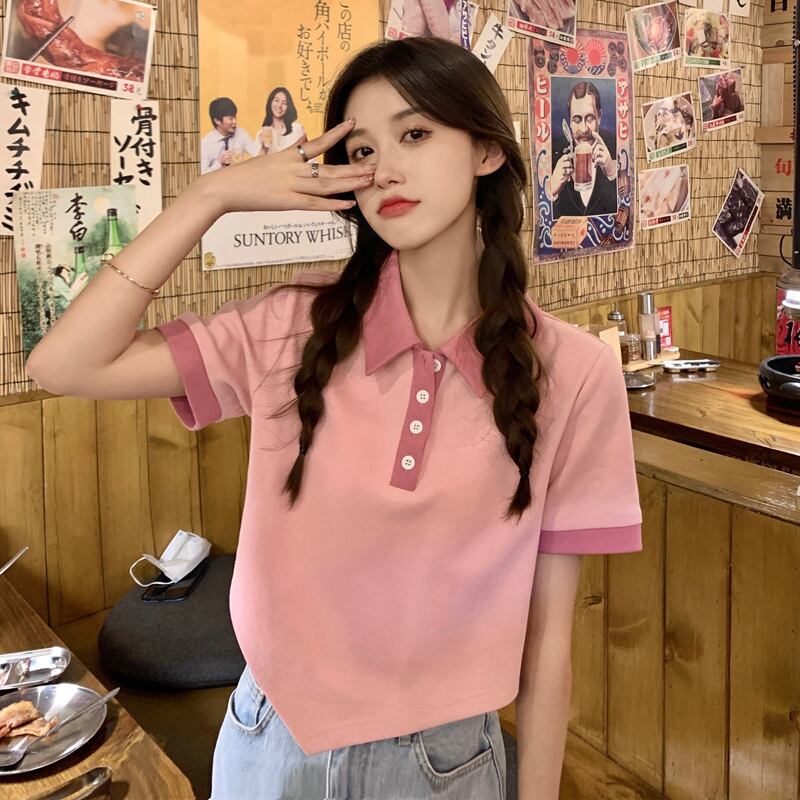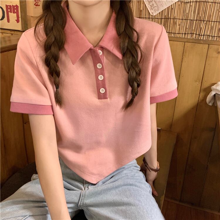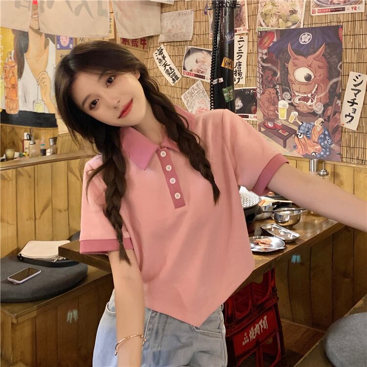 カラーショートTシャツ サマートップス ピンク 夏物 s57615065813189