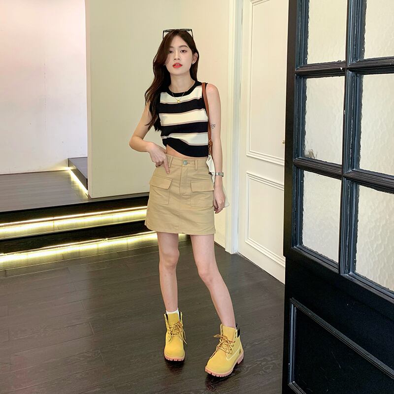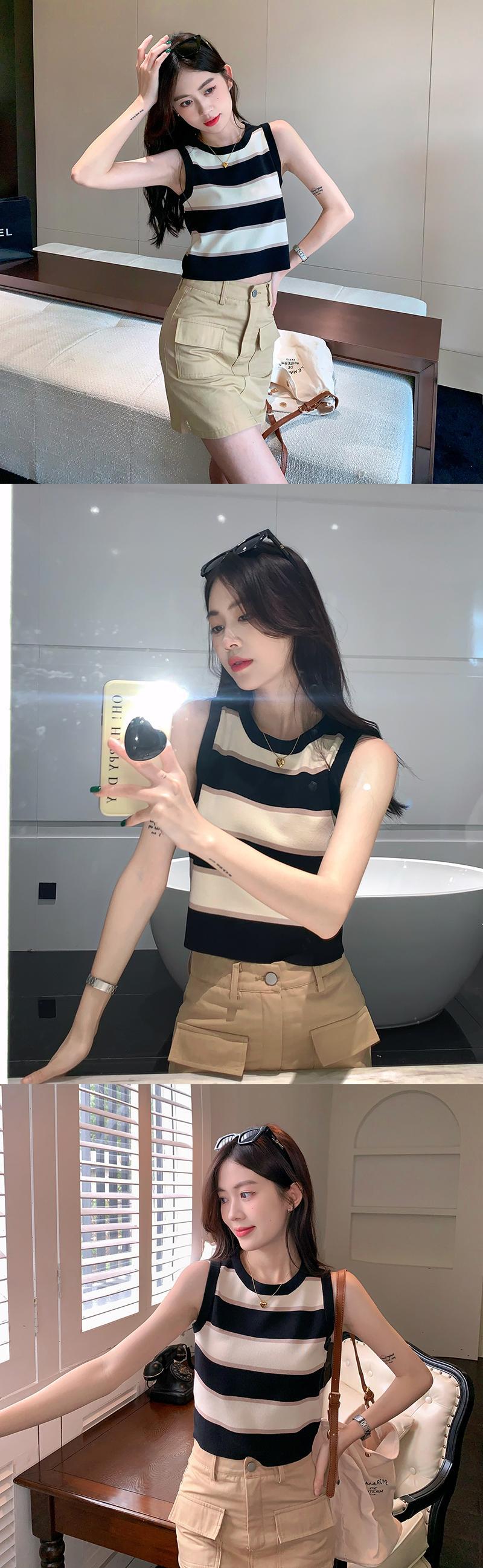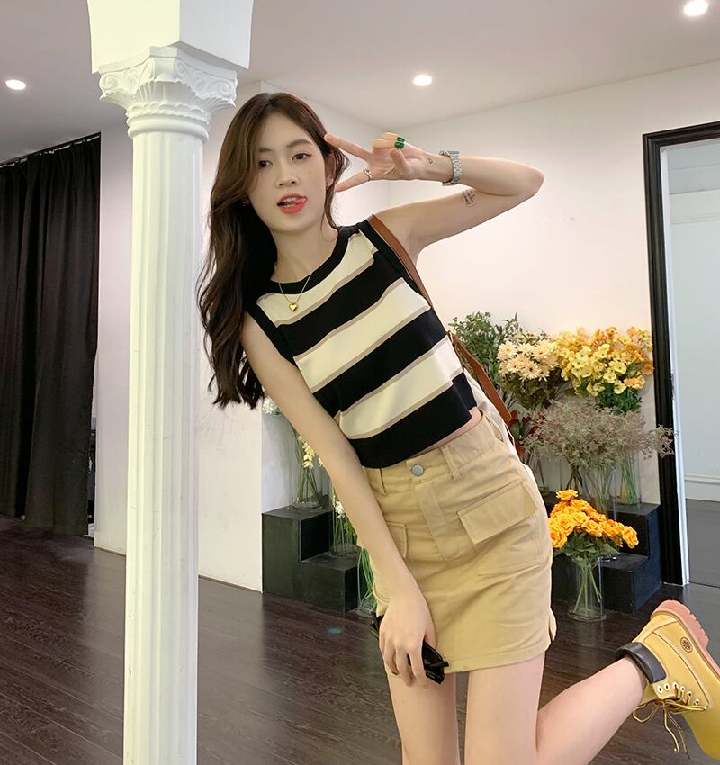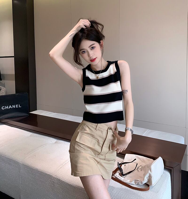 ストライプサマースリムショートトップス 夏物 s576199986454804