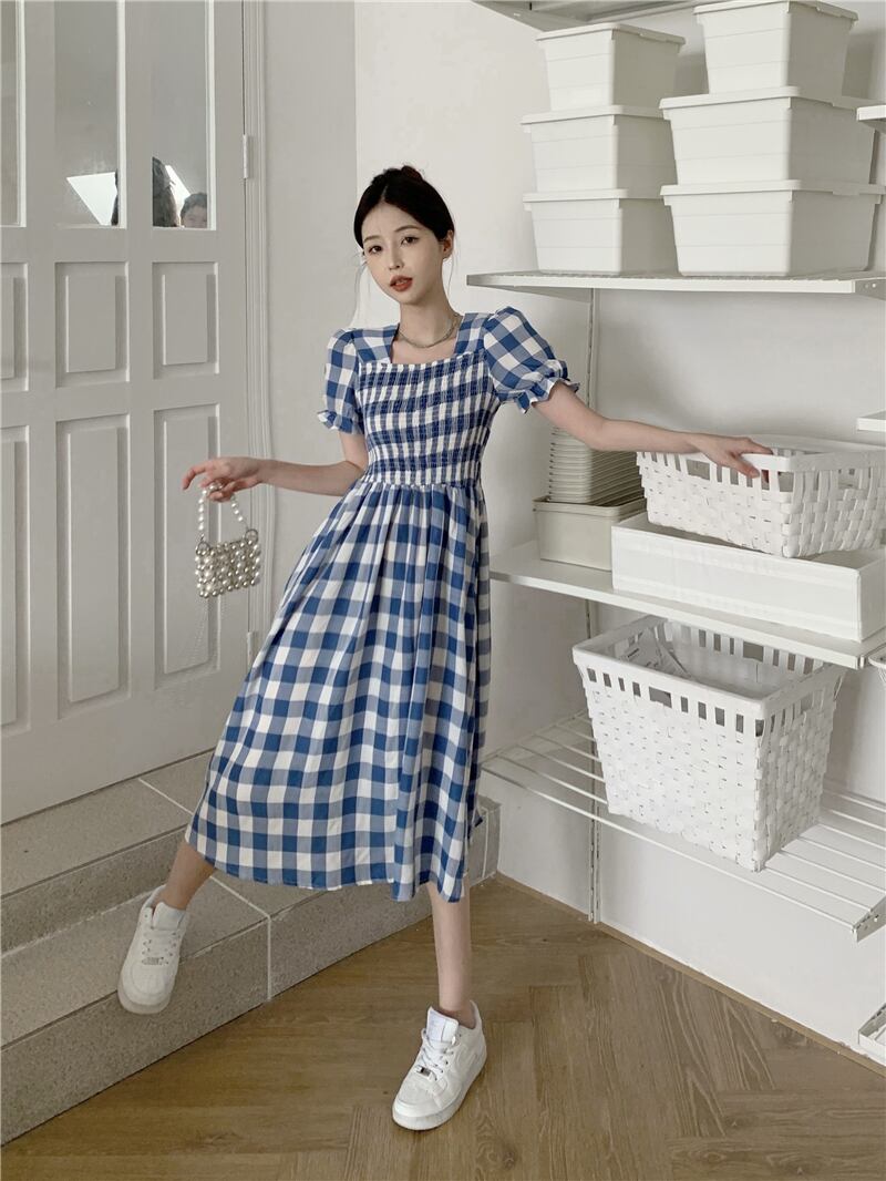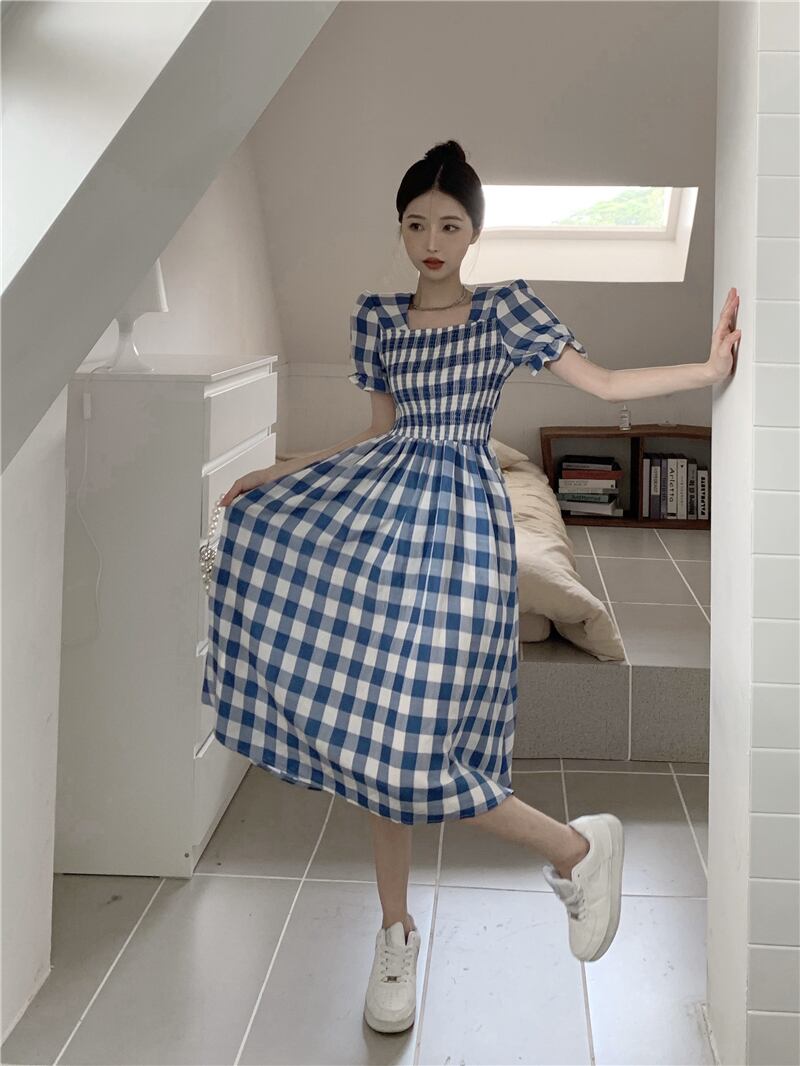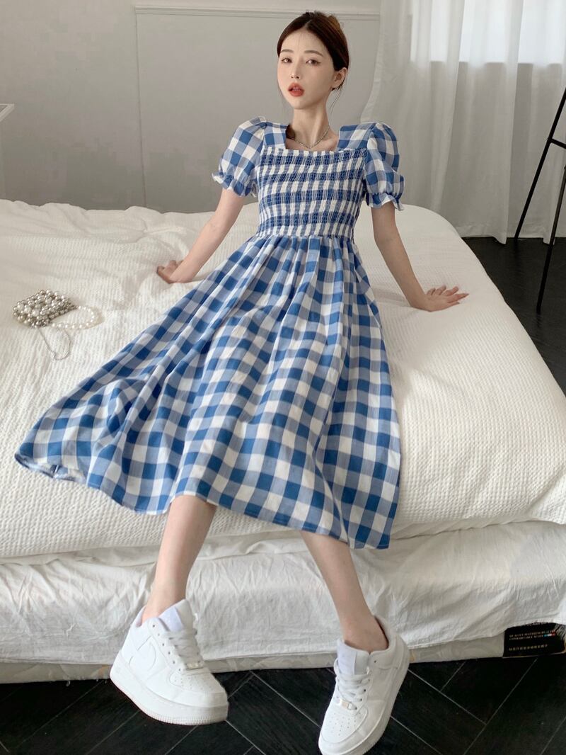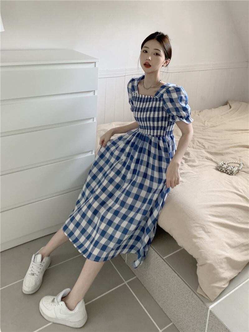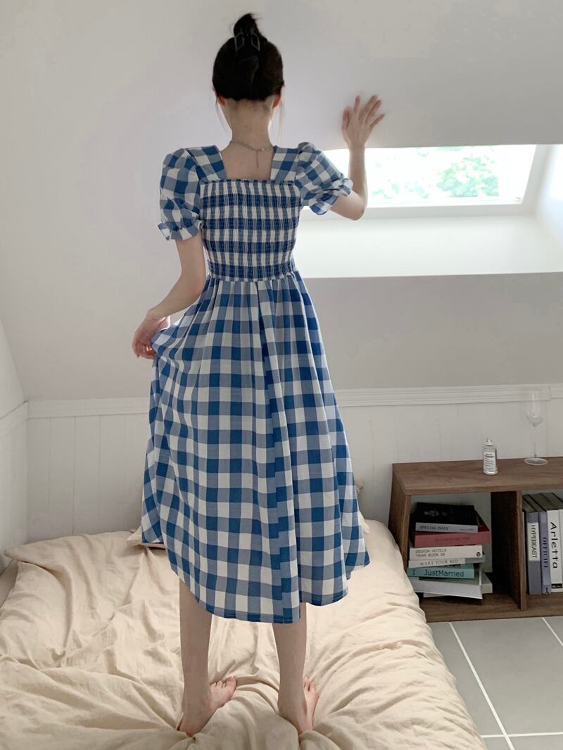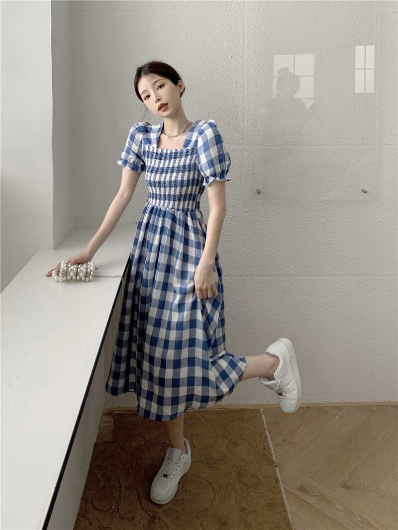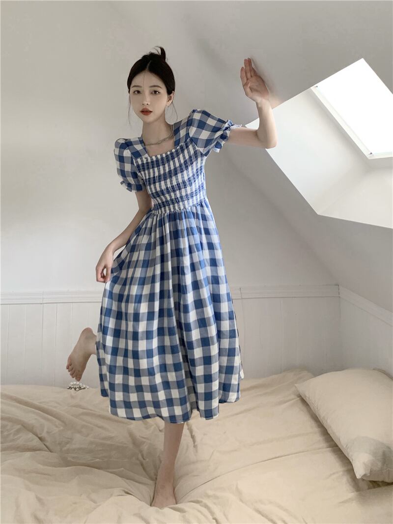 格子柄ドレス サマーウェストロングスカート 大人ガーリー スウィート キュート カジュアル 夏物 s576179237522846